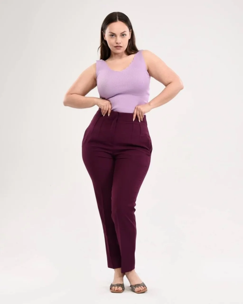 Kadın Yüksek Bel Cepli Ithal Krep Pantolon
