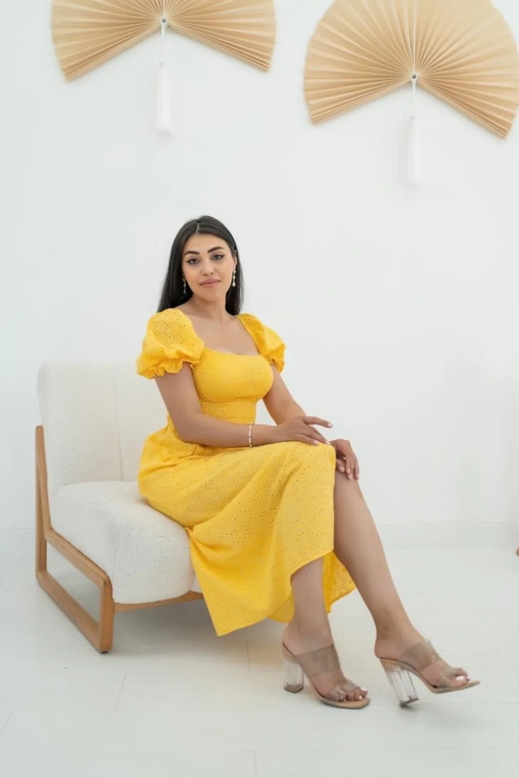 <p>Sarı Tokalı Fisto Elbise</p><br> <p>Modelin Ölçüleri: Boy:165, Kg:55, Göğüs:90, Bel:72, Kalça: 100</p><br> <p>Modelin üzerindeki ürün M/38 bedendir</p><br> <ul> </ul>