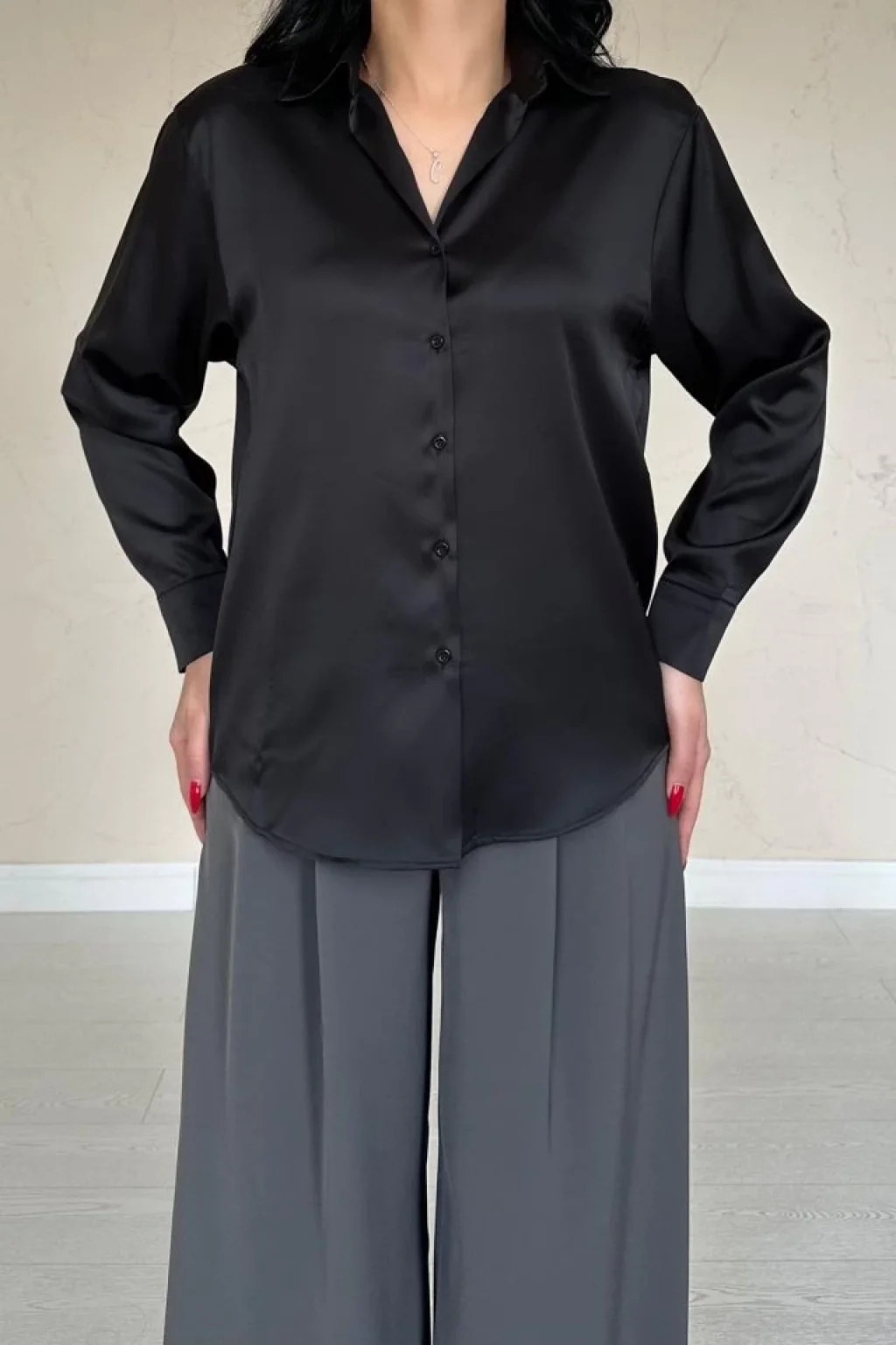 <p>Siyah Saten Gömlek</p><br> <p>Modelin Ölçüleri: Boy:165, Kg:55, Göğüs:90, Bel:72, Kalça: 100</p><br> <p>Modelin üzerindeki ürün M/38 bedendir</p><br> <ul> </ul>