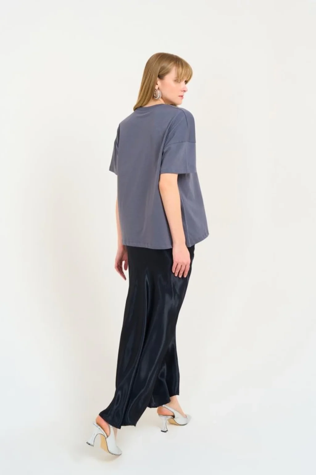 Düz Uzun Saten Etek - Siyah
