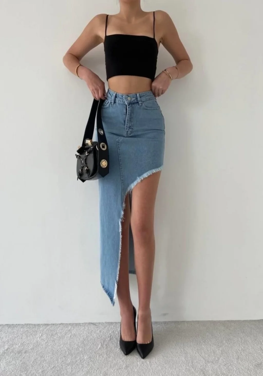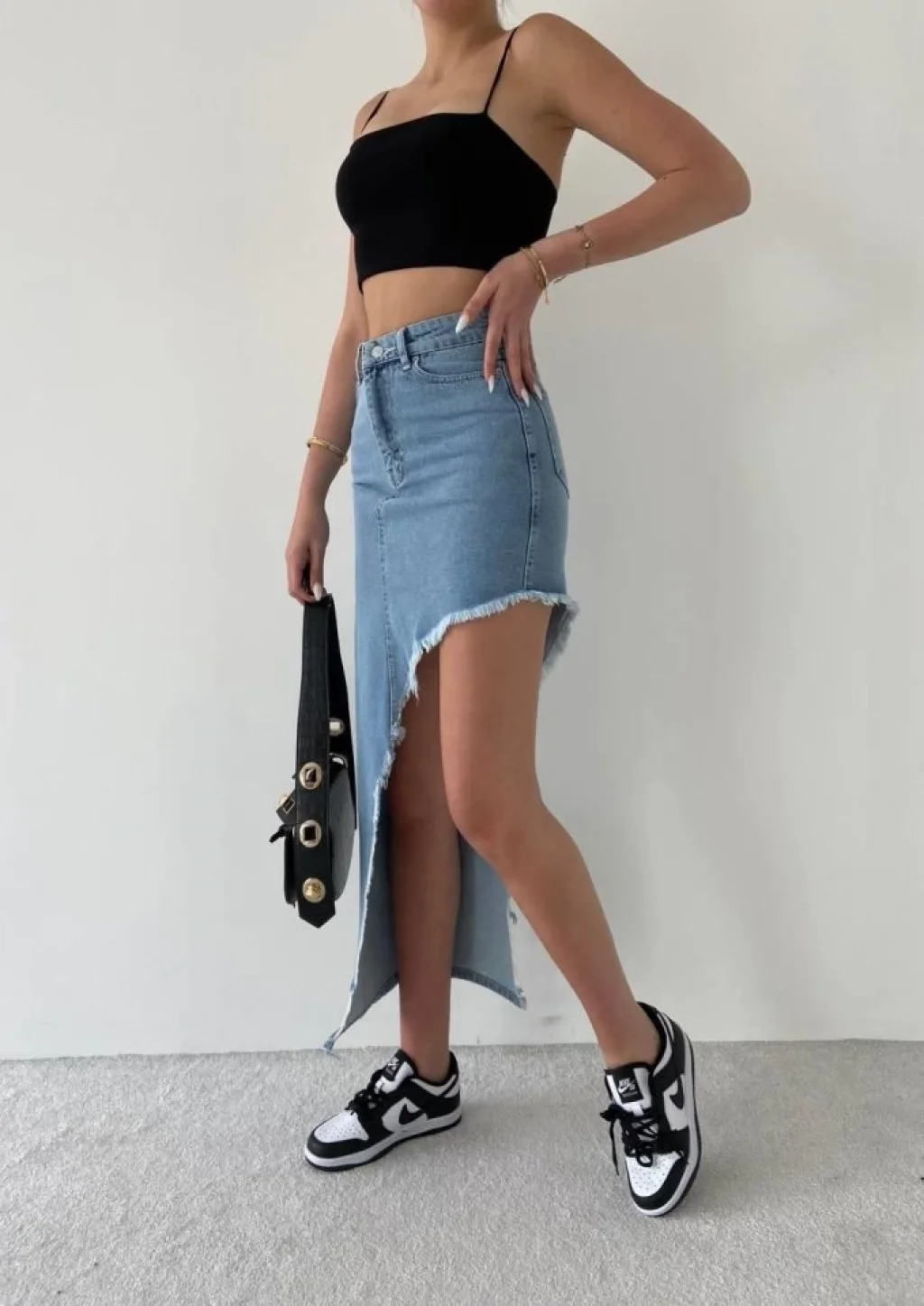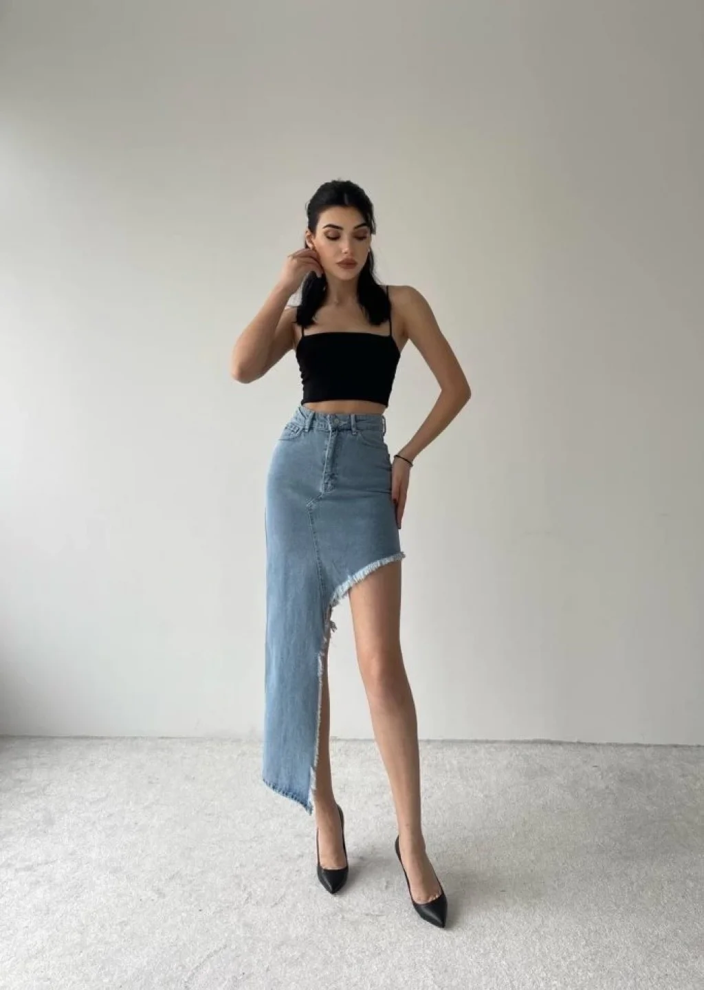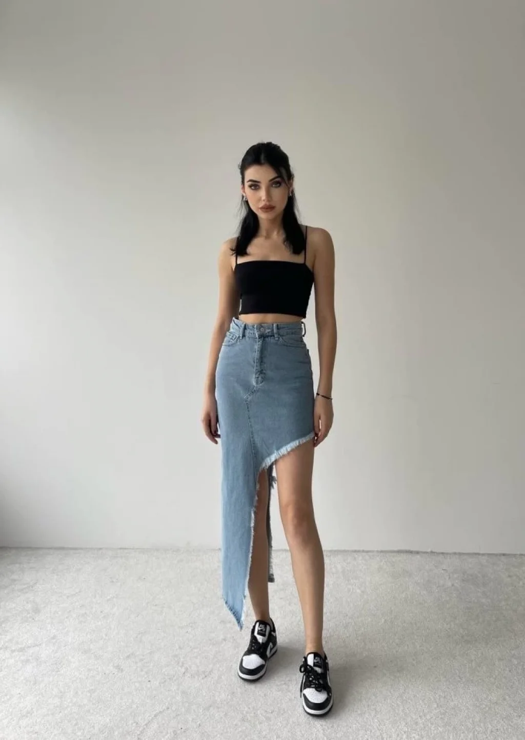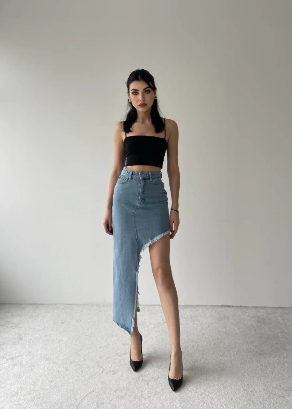 Kadın Uzun Kollu Bisiklet Yaka Asimetrik Kesim Detaylı Dantelli Viskon Bluz