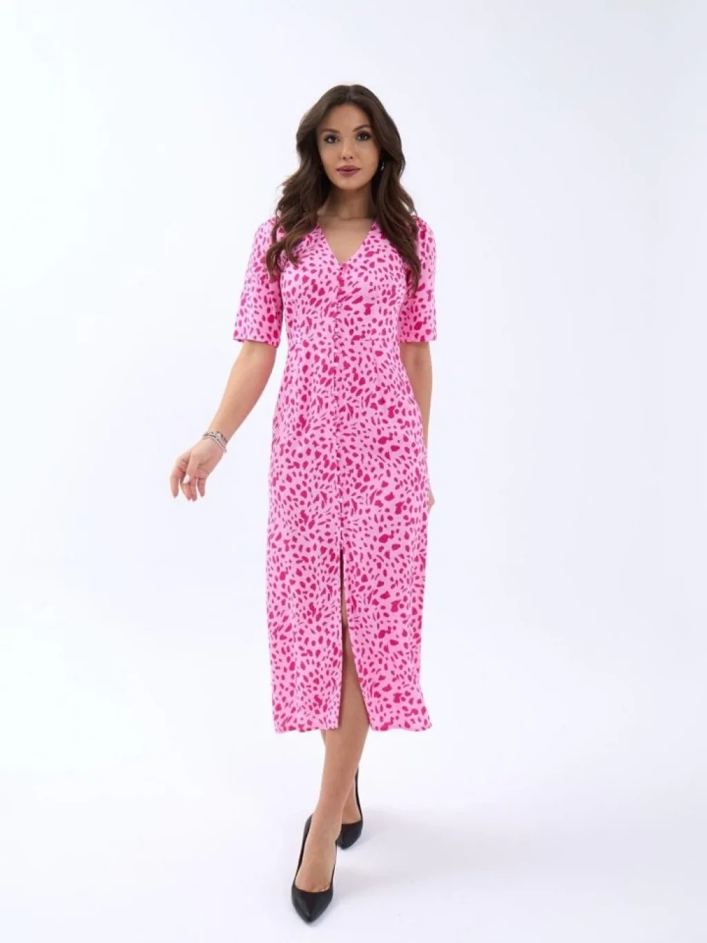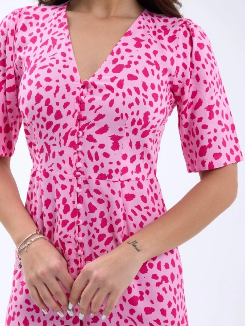 Kadın Uzun Kollu Kruvaze Yakalı Fırfırlı Belden Kuşaklı Leopar Desen Modal Elbise