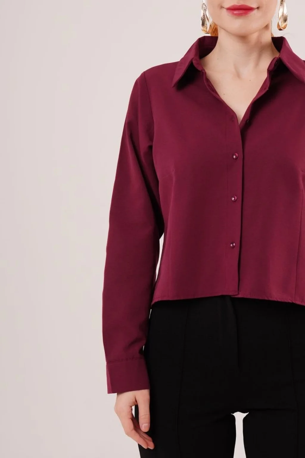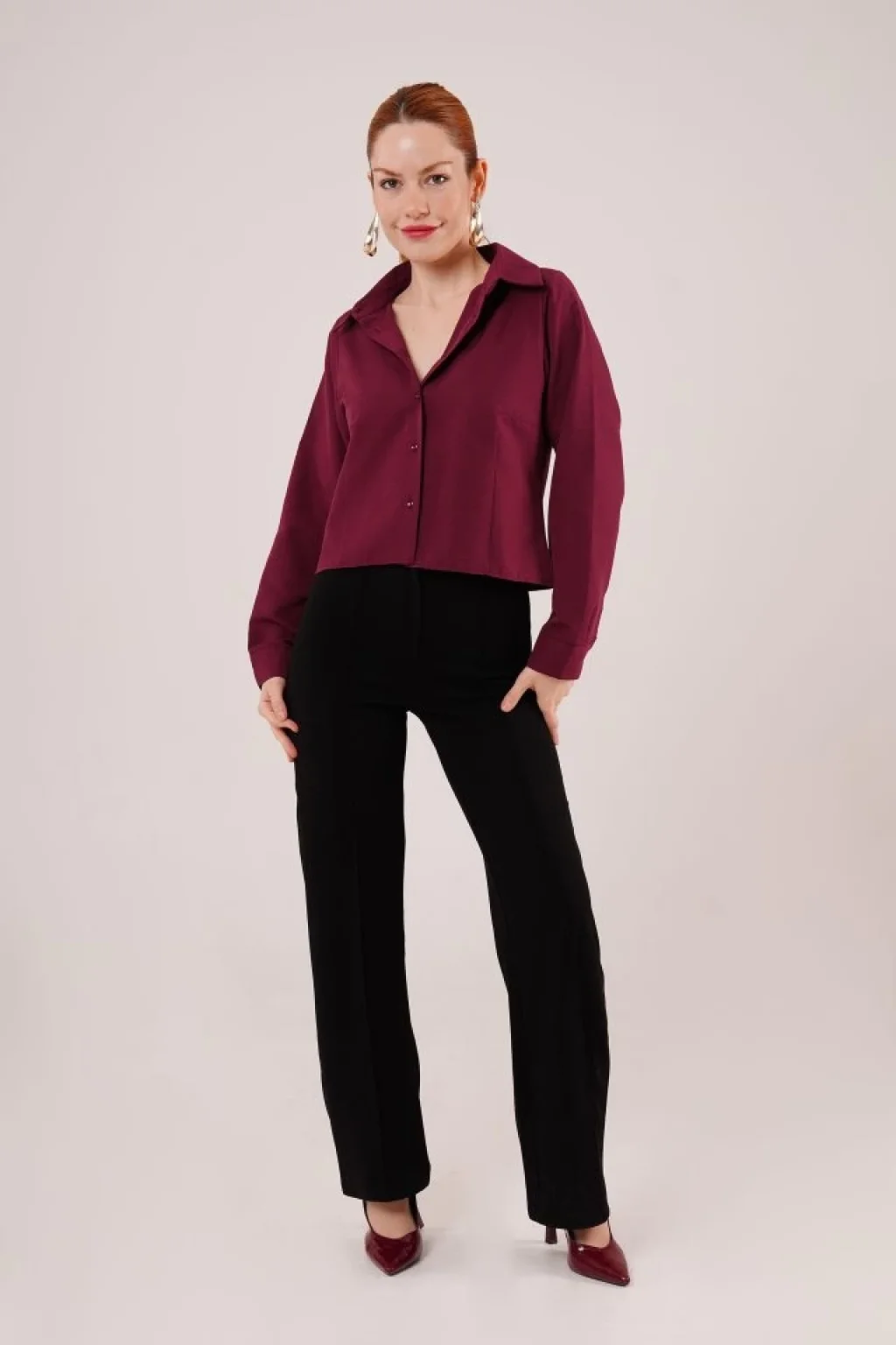 <p>Ön Dikiş Detaylı Bordo Gömlek</p><br> <p>Modelin Ölçüleri: Boy:165, Kg:55, Göğüs:90, Bel:72, Kalça: 100</p><br> <p>Modelin üzerindeki ürün M/38 bedendir</p><br> <ul> </ul>