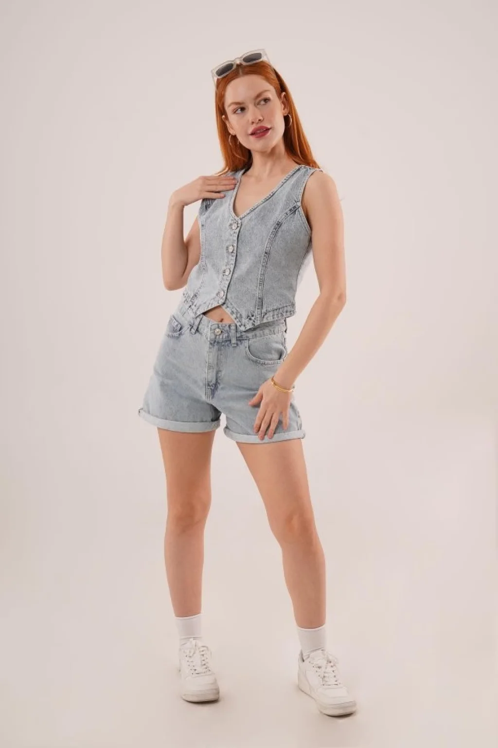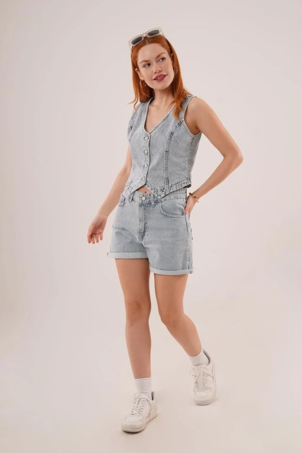 <p>Düğme Ve Ön Dikiş Detaylı Mavi Jean Yelek</p><br> <p>Modelin Ölçüleri: Boy:165, Kg:55, Göğüs:90, Bel:72, Kalça: 100</p><br> <p>Modelin üzerindeki ürün M/38 bedendir</p><br> <ul> </ul>