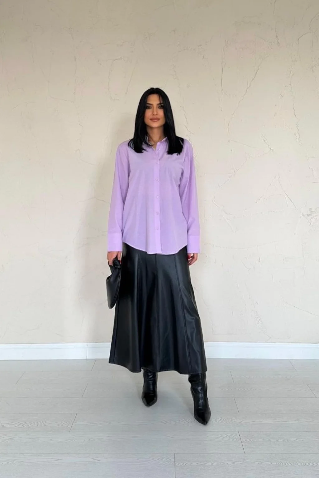 <p>Lila Poplin Gömlek</p><br> <p>Modelin Ölçüleri: Boy:165, Kg:55, Göğüs:90, Bel:72, Kalça: 100</p><br> <p>Modelin üzerindeki ürün M/38 bedendir</p><br> <ul> </ul>