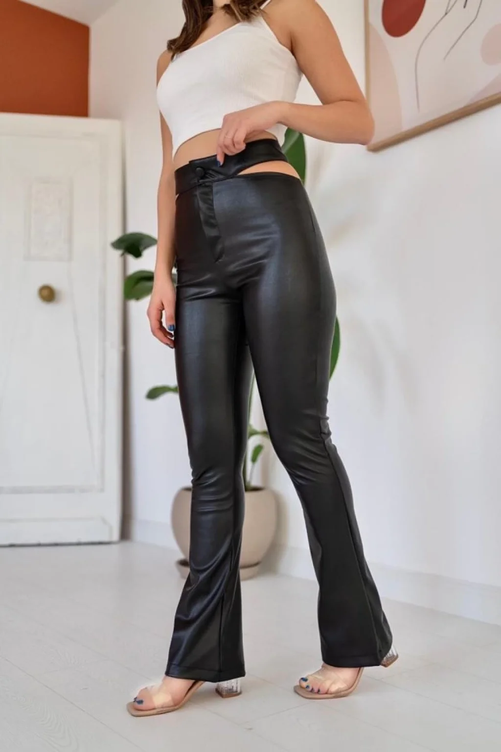 <p>Siyah Bel Detaylı Deri Pantolon</p><br> <p>Modelin Ölçüleri: Boy:165, Kg:55, Göğüs:90, Bel:72, Kalça: 100</p><br> <p>Modelin üzerindeki ürün M/38 bedendir</p><br> <ul> </ul>