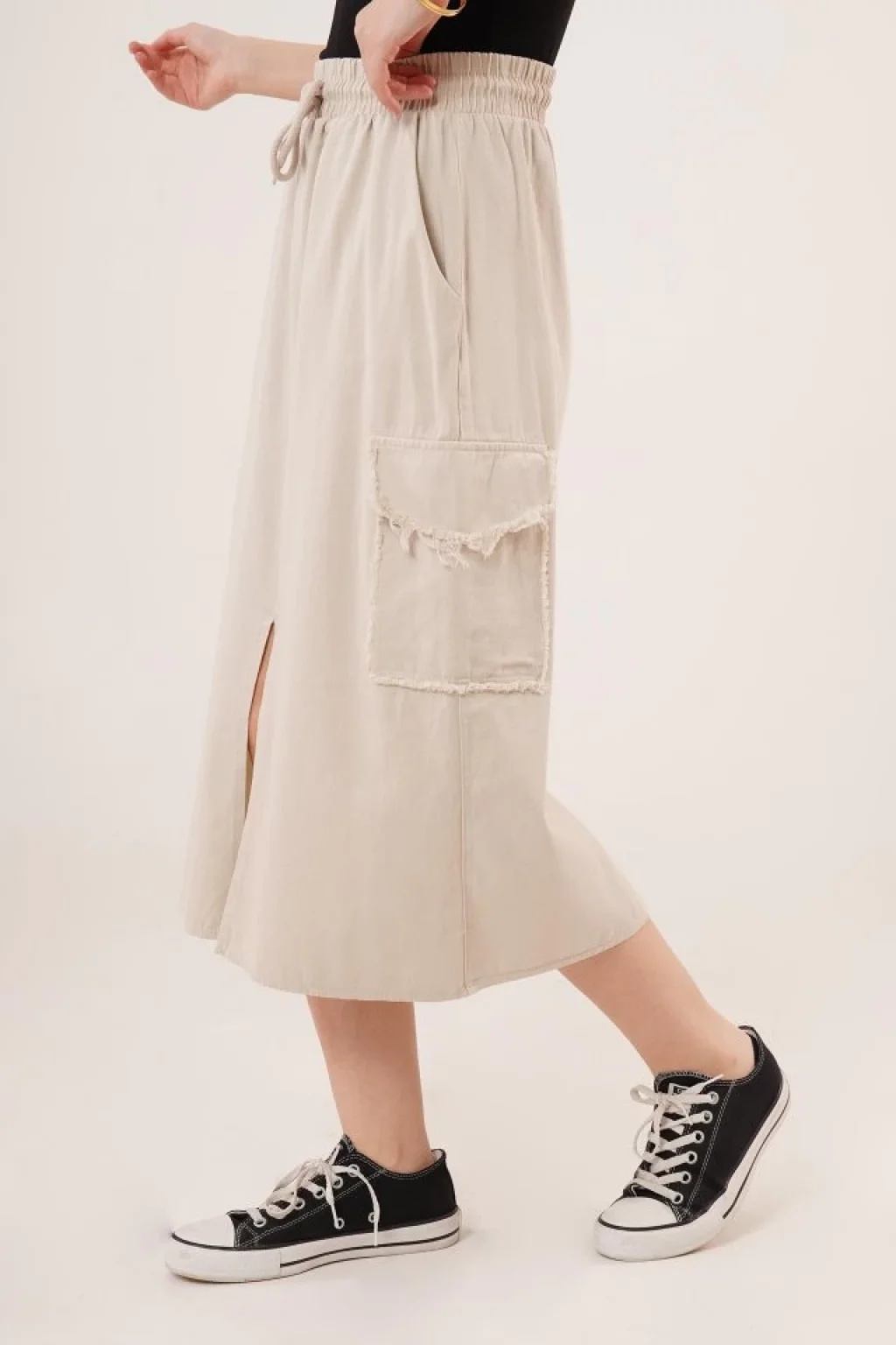 Ön Yırtmaçlı Cep Detaylı Krem Etek
