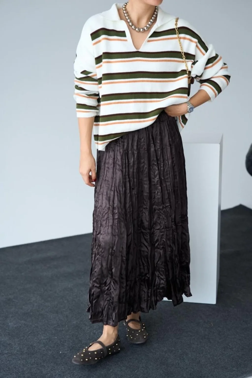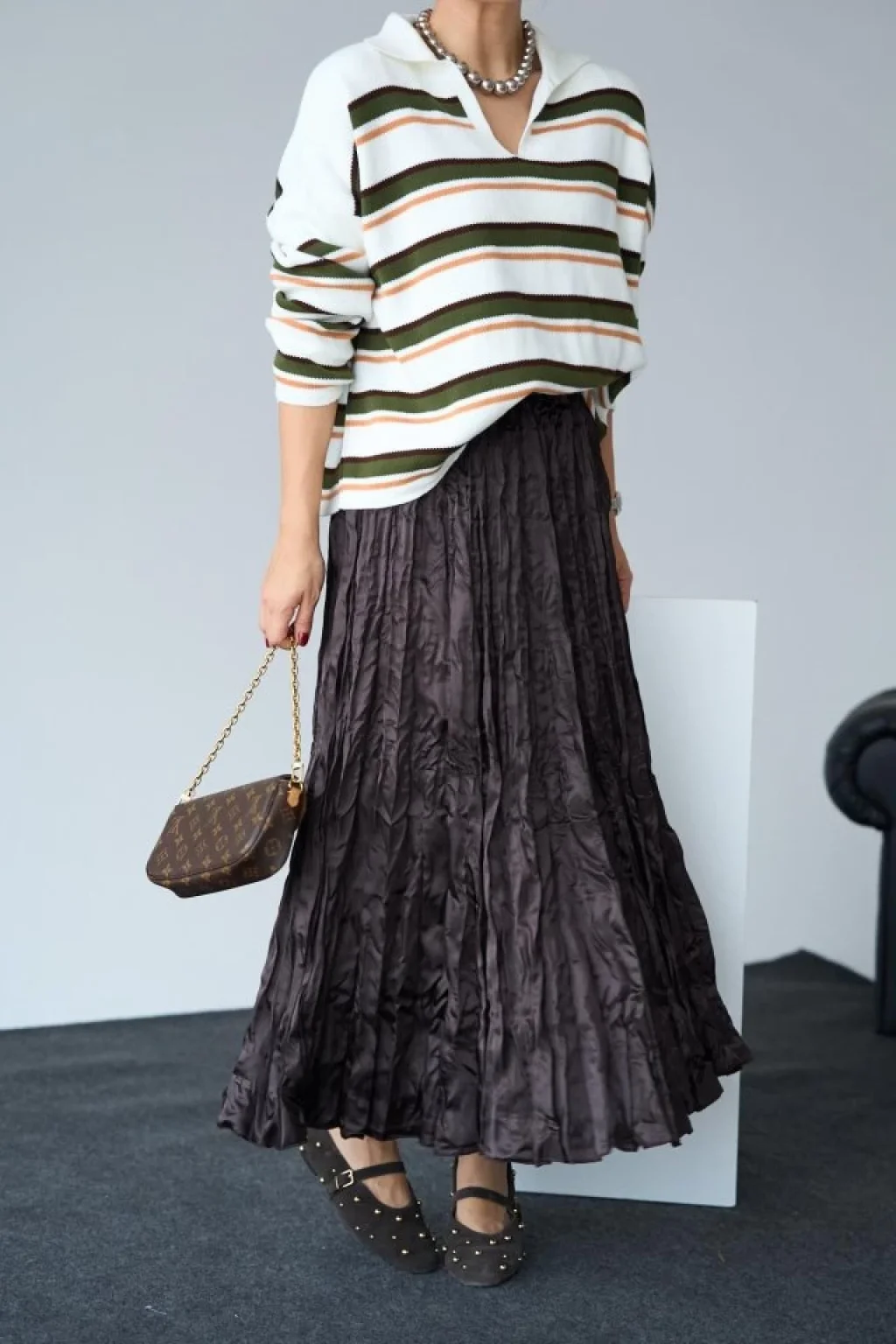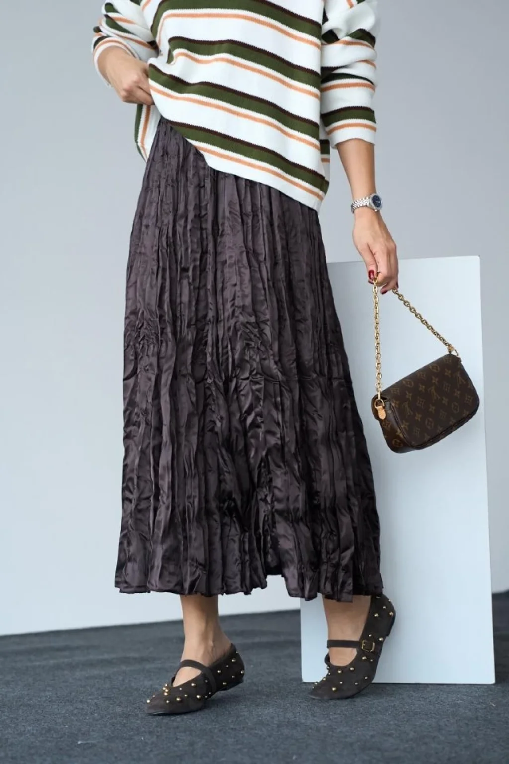 <p>Saten Uzun Etek - KAHVE</p><br> <p>Modelin Ölçüleri: Boy:165, Kg:55, Göğüs:90, Bel:72, Kalça: 100</p><br> <p>Modelin üzerindeki ürün M/38 bedendir</p><br> <ul> </ul>