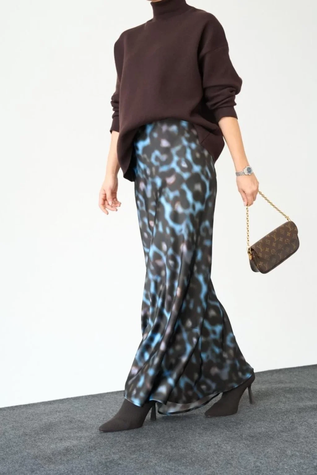 Kadın Uzun Kollu Yarı Balıkçı Yaka Leopar Detaylı Kaşkorse Bluz