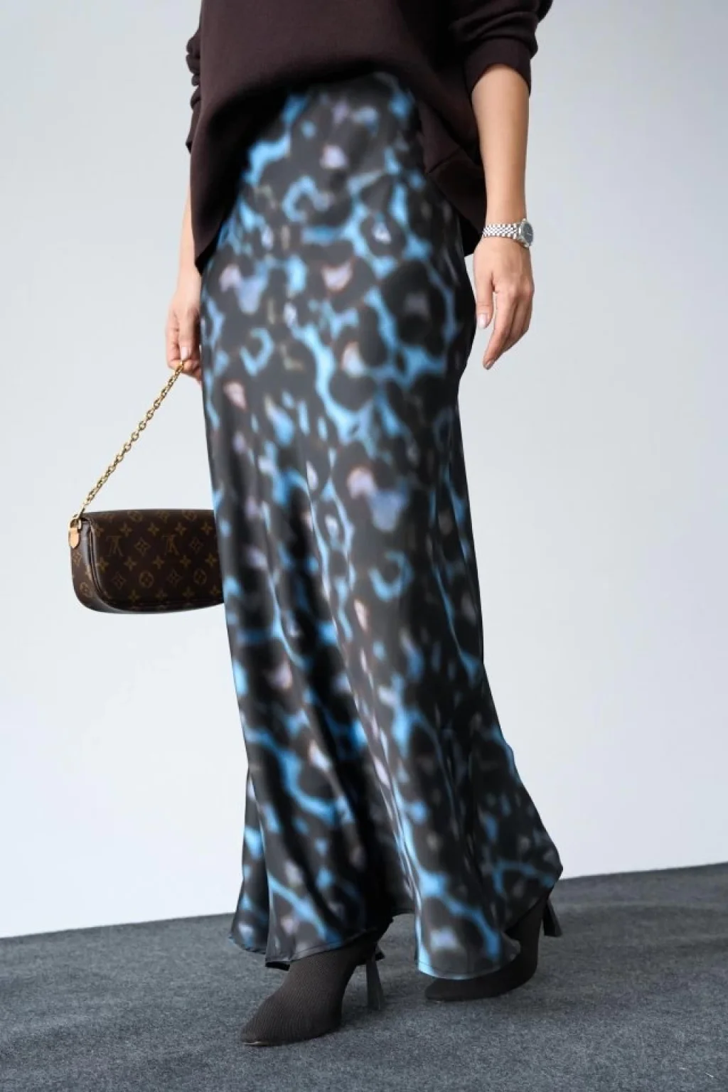 Uzun Saten ETEK - Siyah-Mavi