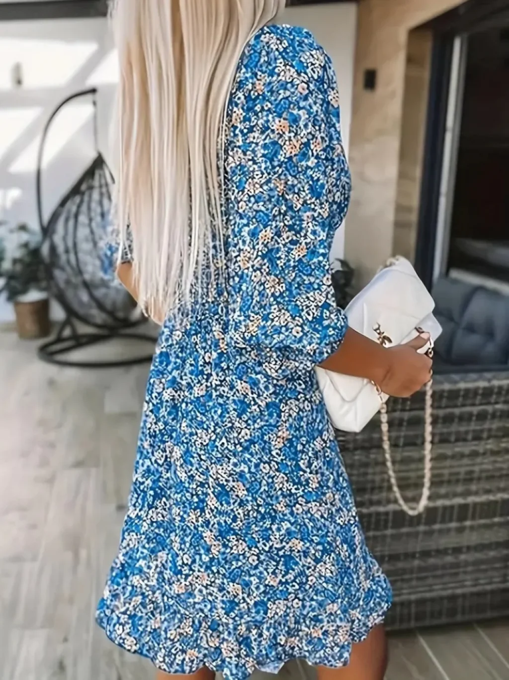 Kadın Uzun Kollu Kruvaze Yakalı Desenli Süprem Maxi Elbise