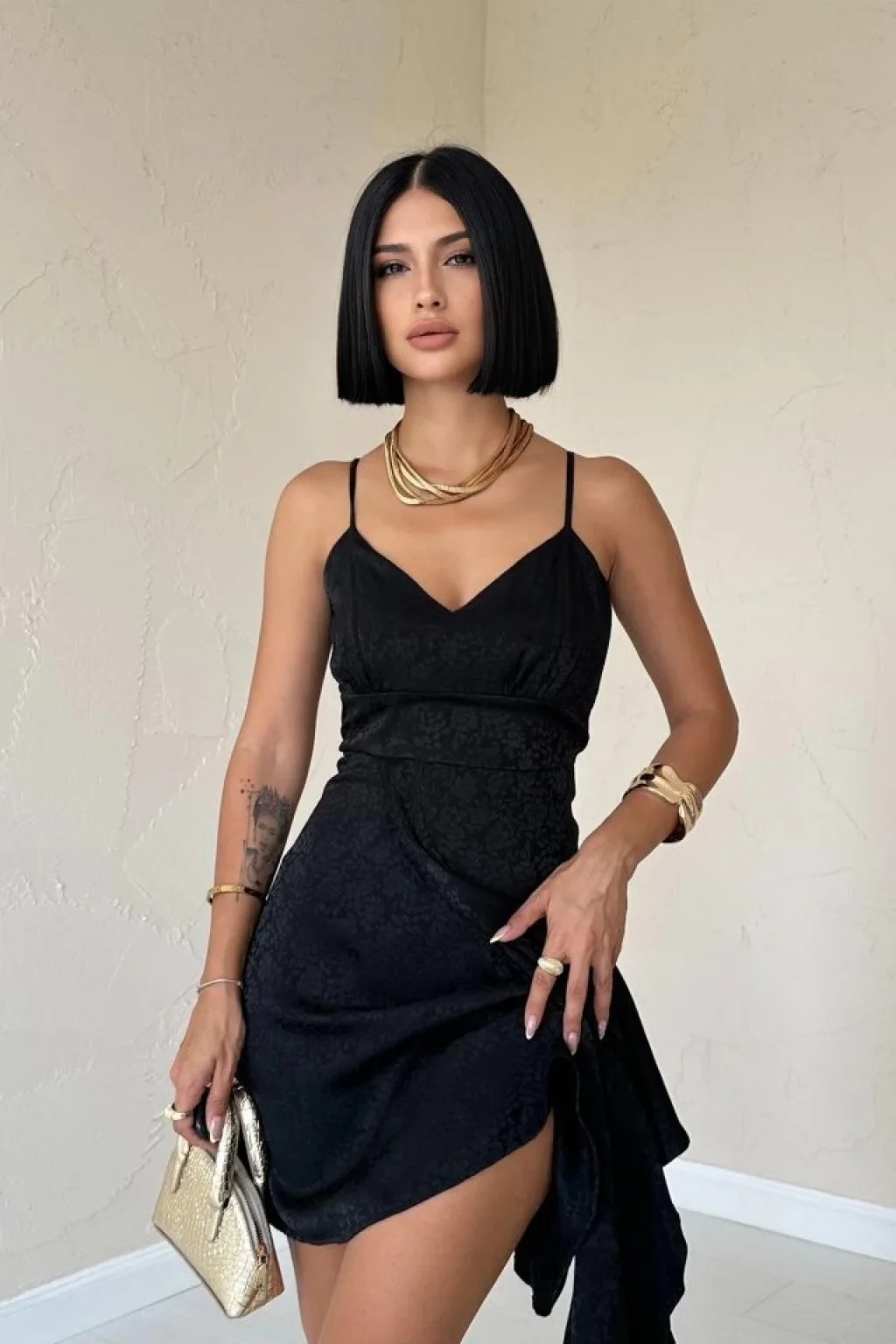 <p>Siyah Jakarlı Asimetrik Elbise</p><br> <p>Modelin Ölçüleri: Boy:165, Kg:55, Göğüs:90, Bel:72, Kalça: 100</p><br> <p>Modelin üzerindeki ürün M/38 bedendir</p><br> <ul> </ul>