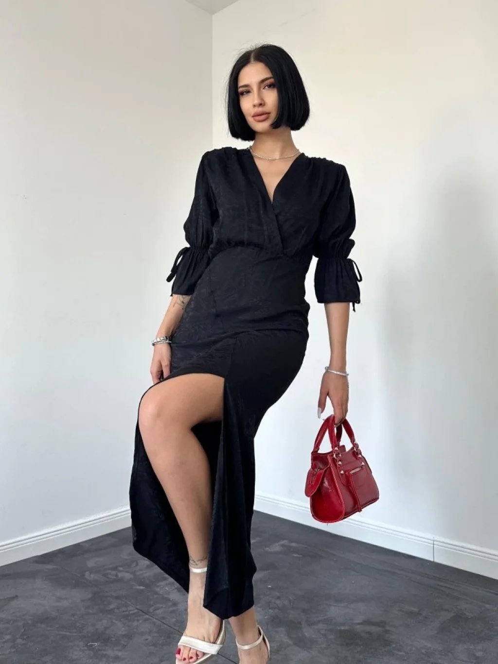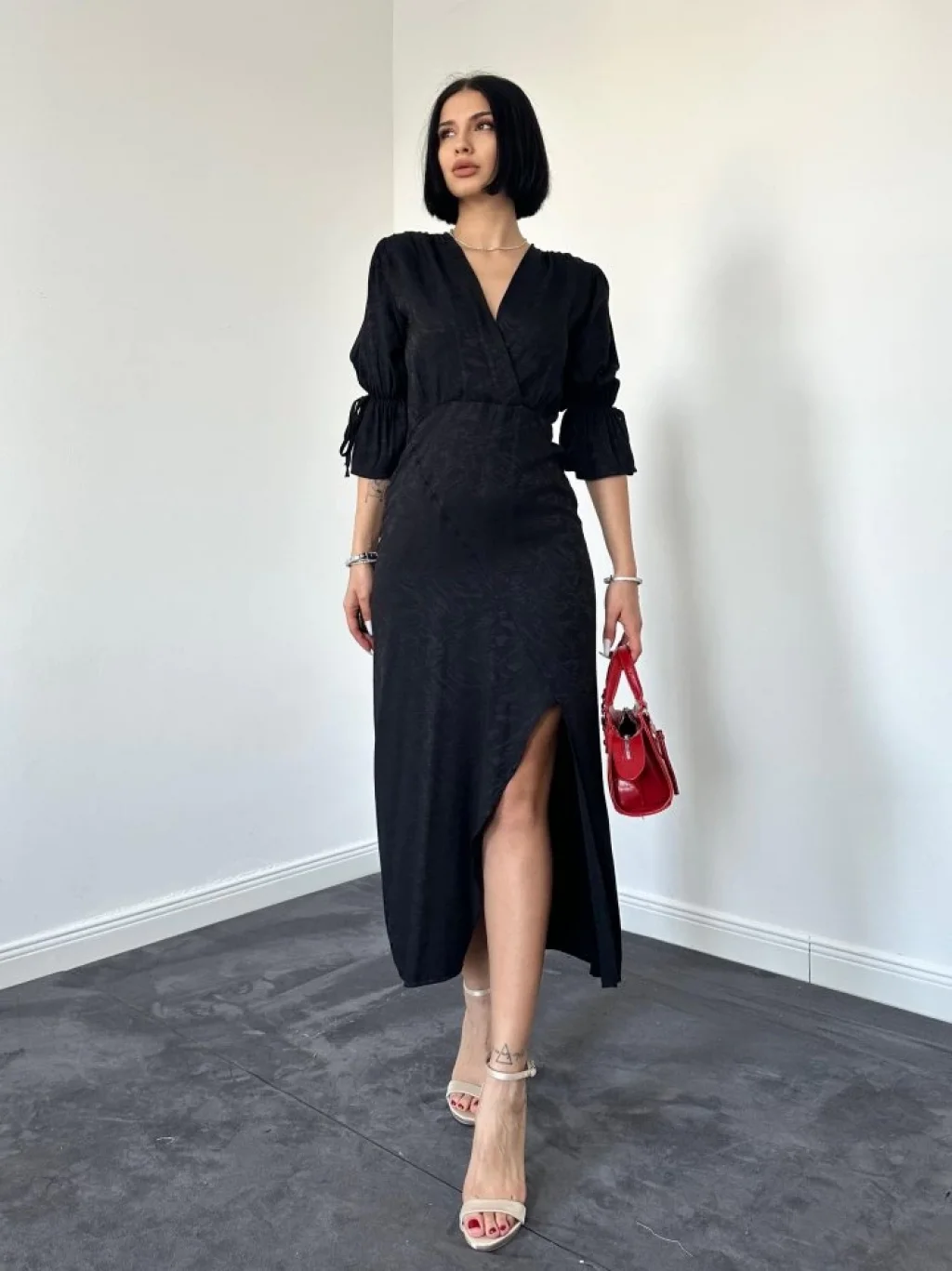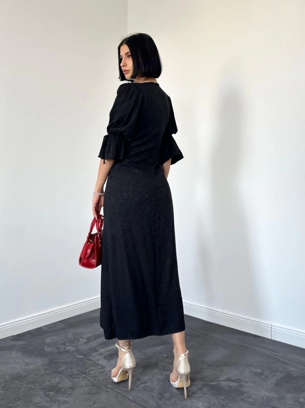 Siyah Yırtmaçlı Jakar Elbise