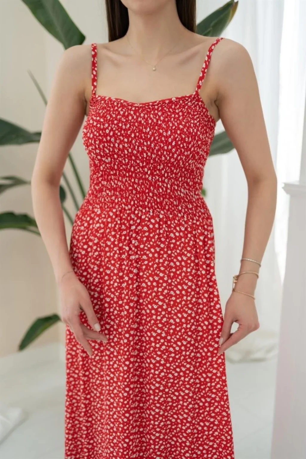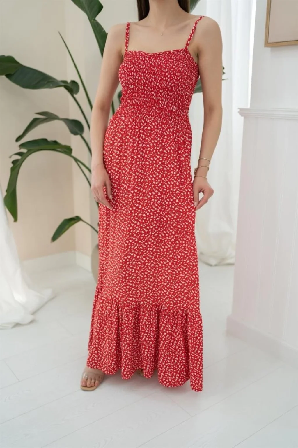 <p>Kırmızı Eteği Fırfırlı Elbise</p><br> <p>Modelin Ölçüleri: Boy:165, Kg:55, Göğüs:90, Bel:72, Kalça: 100</p><br> <p>Modelin üzerindeki ürün M/38 bedendir</p><br> <ul> </ul>