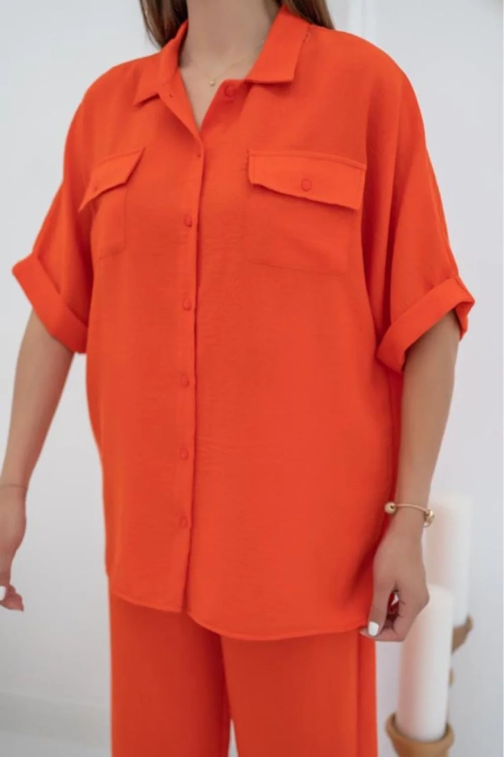 <p>Oranj Gömlek Ve Pantolon Takım</p><br> <p>Modelin Ölçüleri: Boy:165, Kg:55, Göğüs:90, Bel:72, Kalça: 100</p><br> <p>Modelin üzerindeki ürün M/38 bedendir</p><br> <ul> </ul>