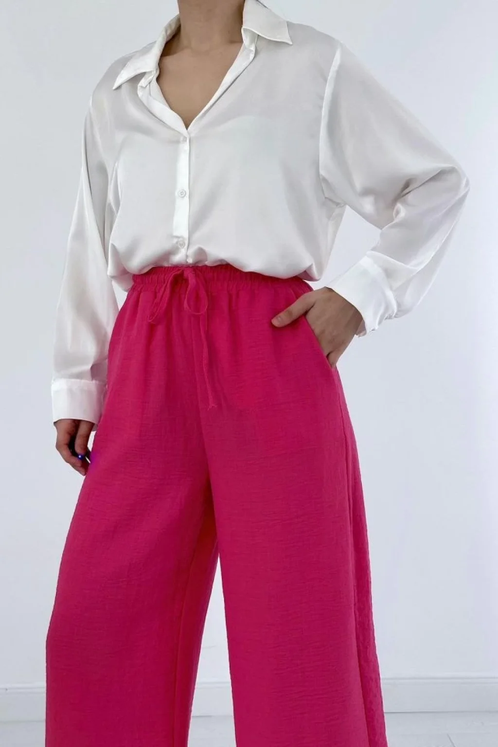 <p>Fuşya Keten Pantolon</p><br> <p>Modelin Ölçüleri: Boy:165, Kg:55, Göğüs:90, Bel:72, Kalça: 100</p><br> <p>Modelin üzerindeki ürün M/38 bedendir</p><br> <ul> </ul>