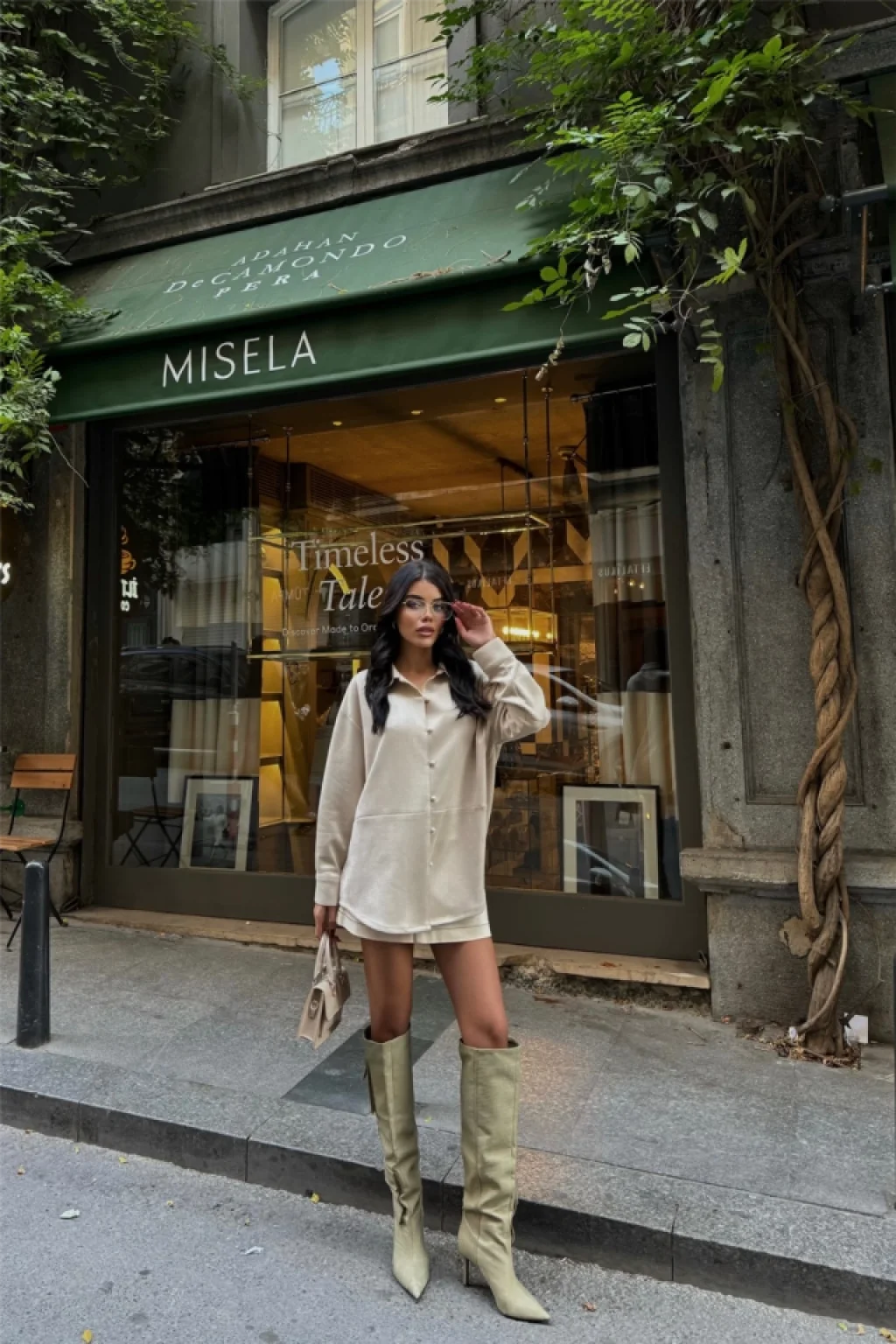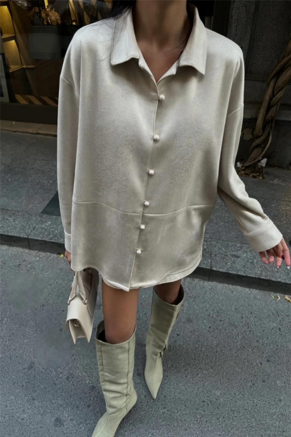<p>SÜET GÖMLEK - Taş</p><br> <p>Modelin Ölçüleri: Boy:165, Kg:55, Göğüs:90, Bel:72, Kalça: 100</p><br> <p>Modelin üzerindeki ürün M/38 bedendir</p><br> <ul> </ul>
