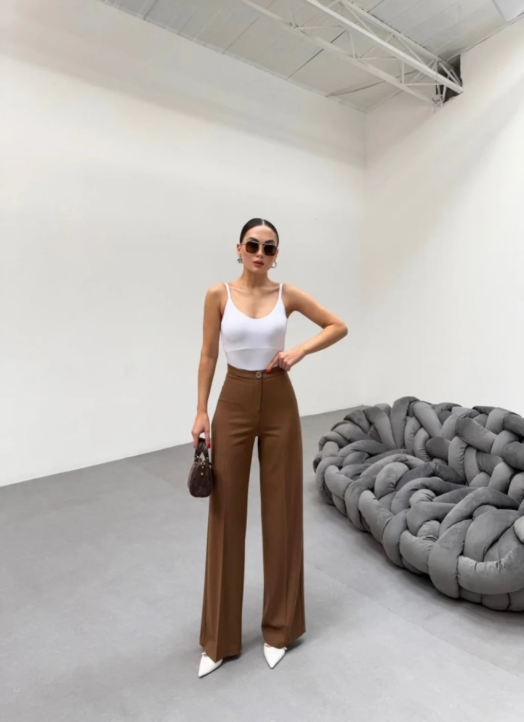230 Gr Poly Viscose Lycra Metal Düğme Palazzo Pantolon