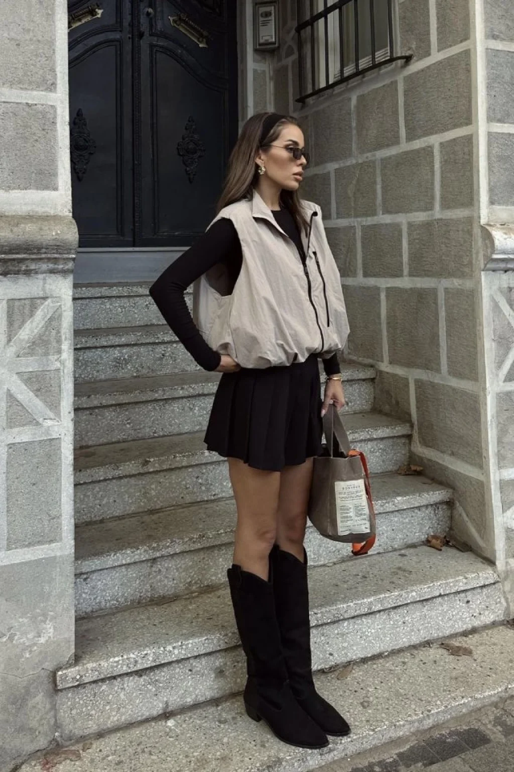 Yelekli Ve Pilise Etekli Triko Takım 10001