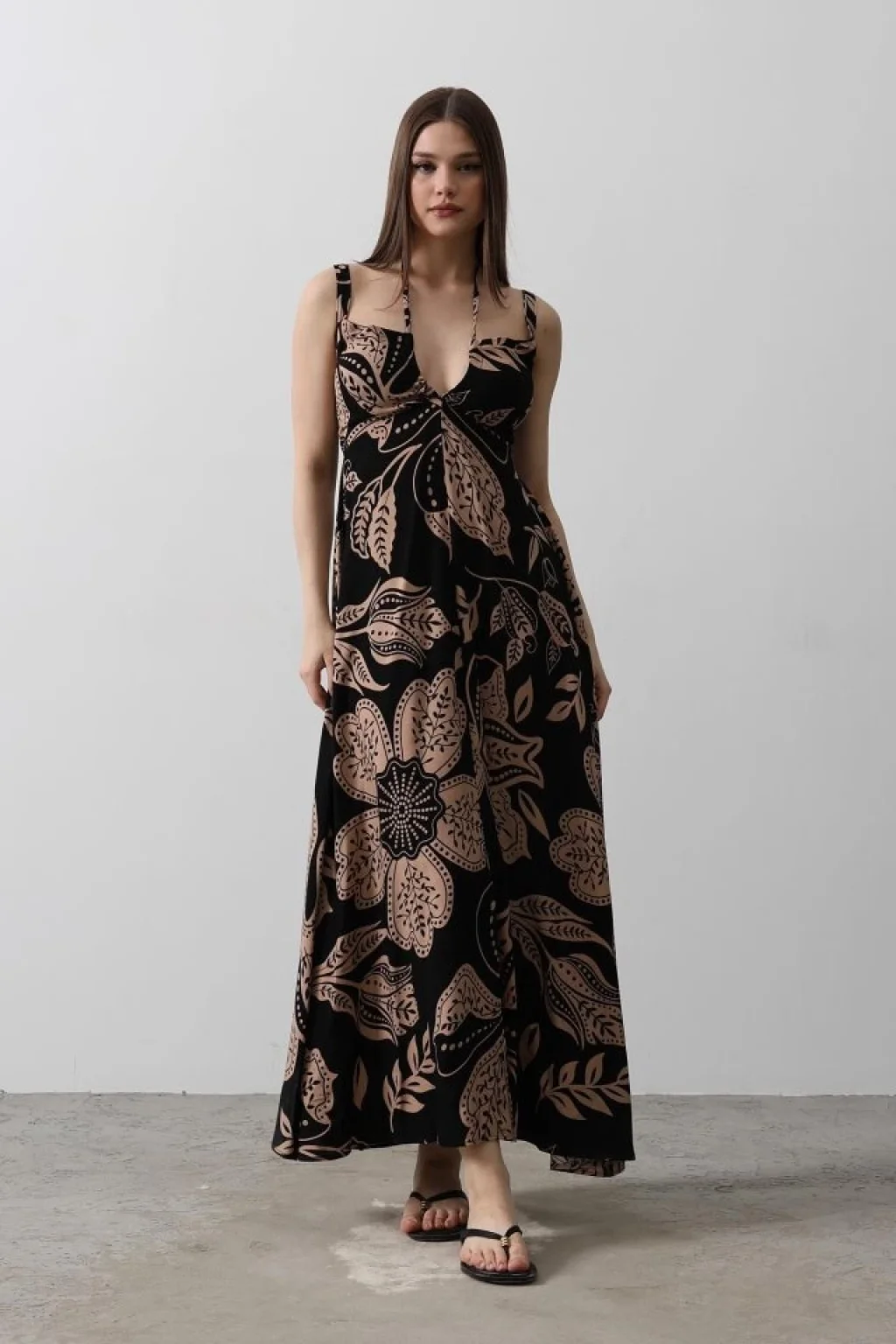 Kadın Uzun Kollu Kruvaze Yakalı Desenli Süprem Maxi Elbise