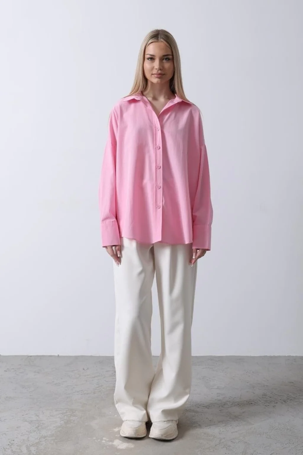Geniş Manşet Detaylı Gömlek - Şeker Pembe