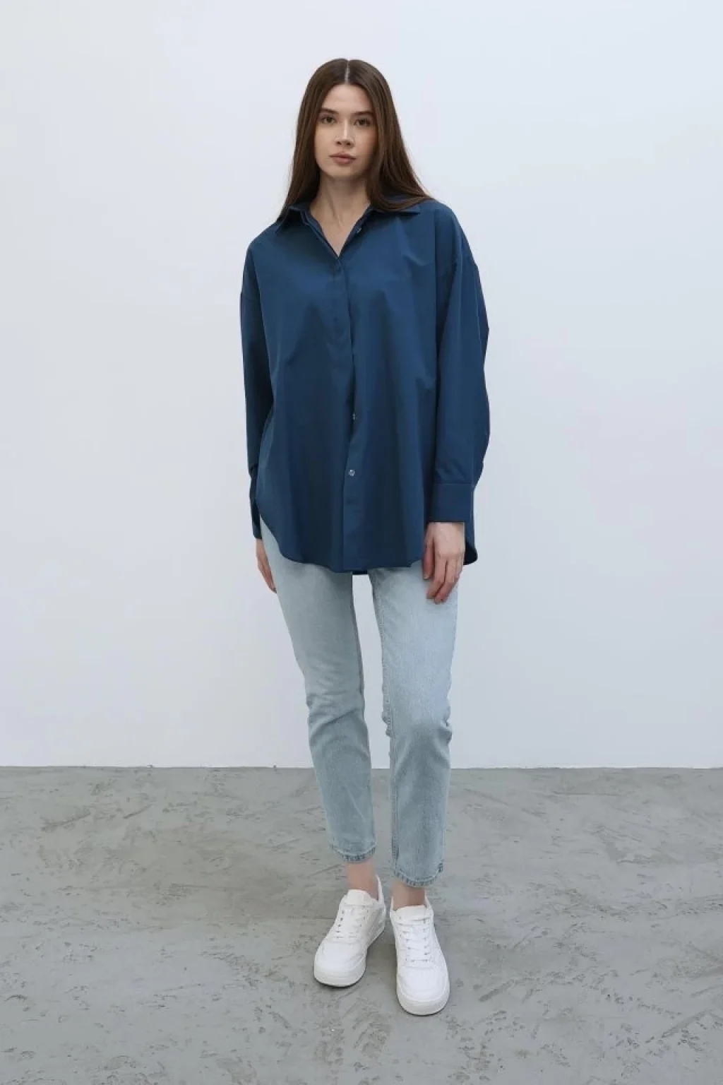 <p>Uzun Kol Gömlek - İndigo</p><br> <p>Modelin Ölçüleri: Boy:165, Kg:55, Göğüs:90, Bel:72, Kalça: 100</p><br> <p>Modelin üzerindeki ürün M/38 bedendir</p><br> <ul> </ul>