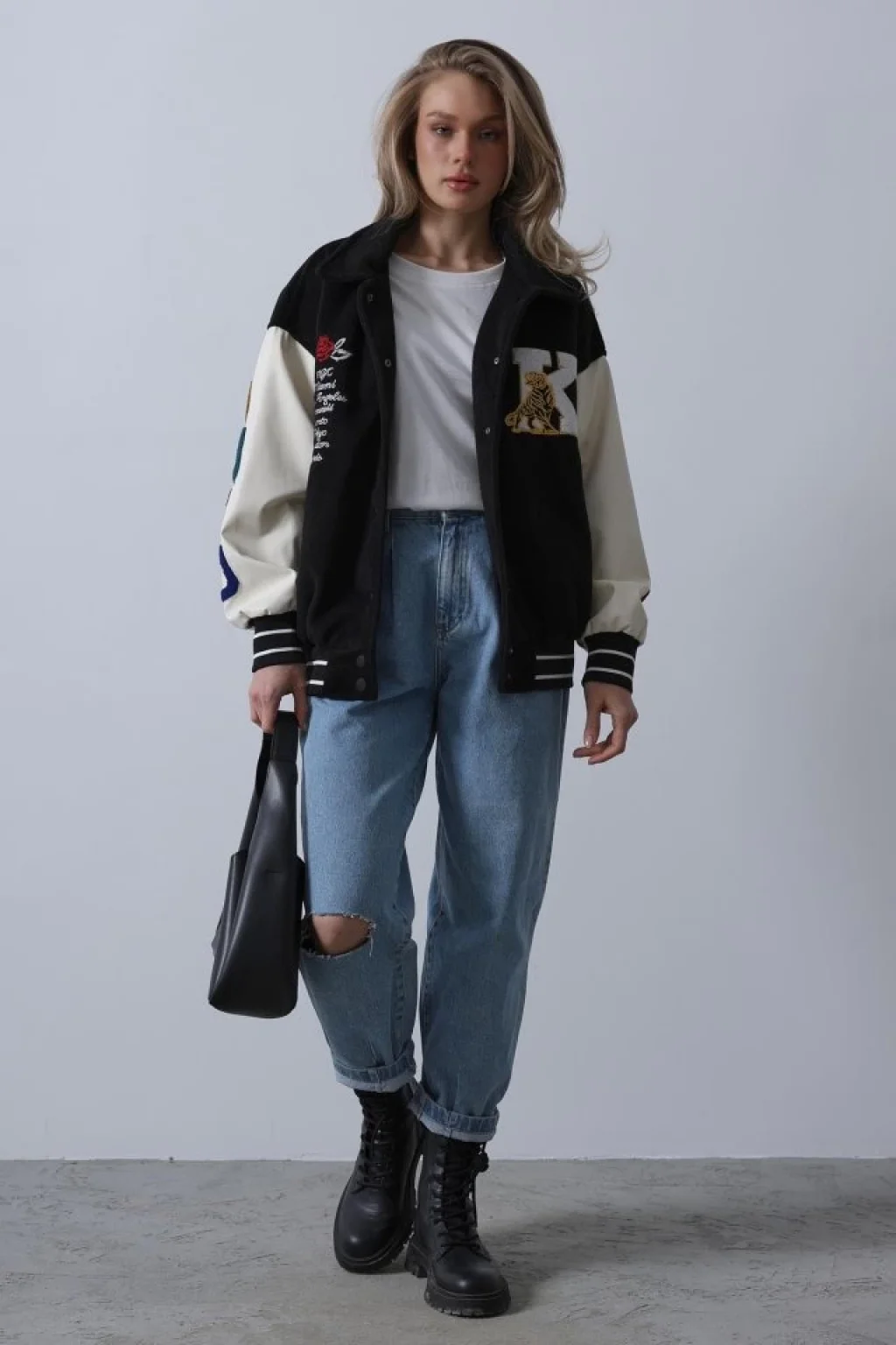 Kadın Uzun Kollu önden Fermuarlı Incili Kısa Modal Ceket