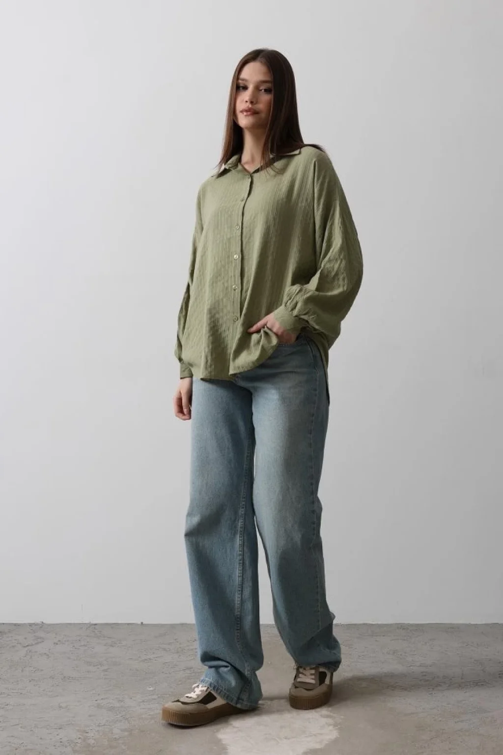 Kadın Dokuma Viskon Kumaş V Yaka Dekolte Ve Metal Düğme Detaylı Gömlek