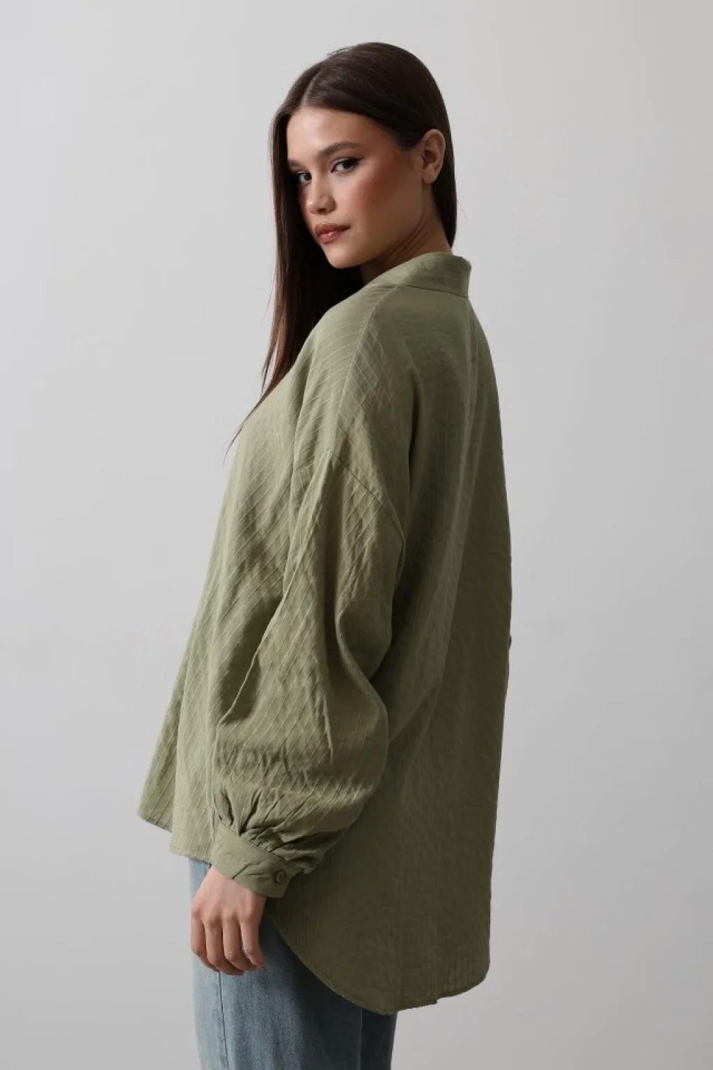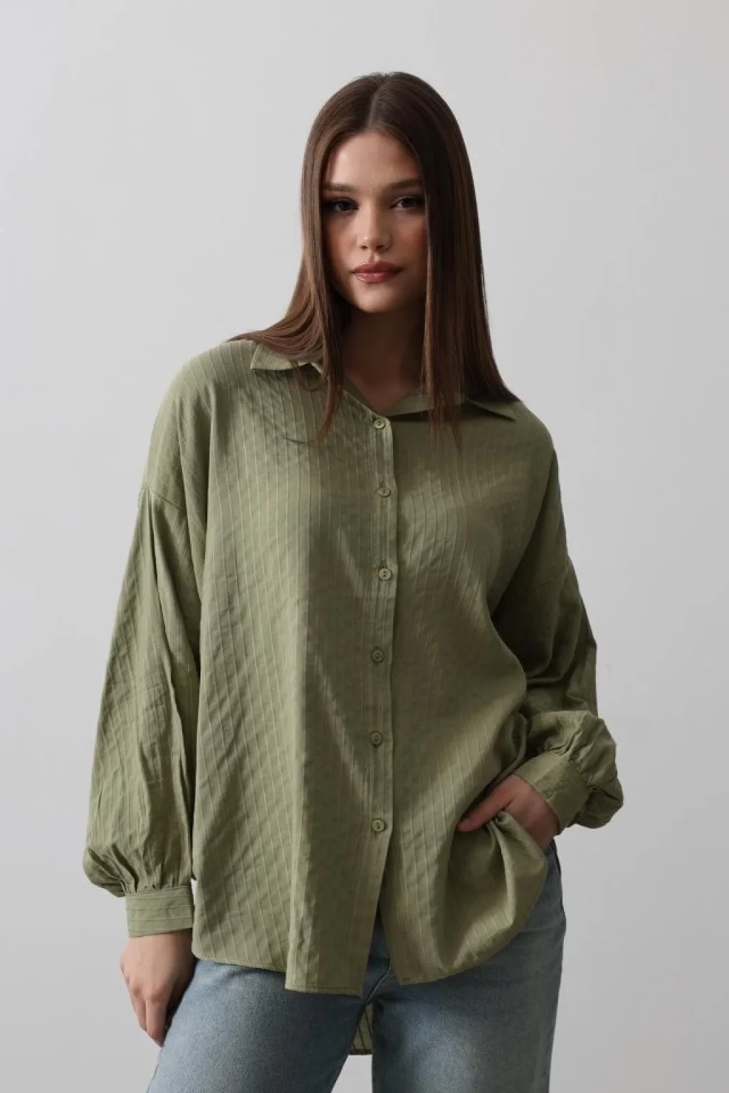<p>Çizgili Uzun Kol Gömlek - Haki</p><br> <p>Modelin Ölçüleri: Boy:165, Kg:55, Göğüs:90, Bel:72, Kalça: 100</p><br> <p>Modelin üzerindeki ürün M/38 bedendir</p><br> <ul> </ul>