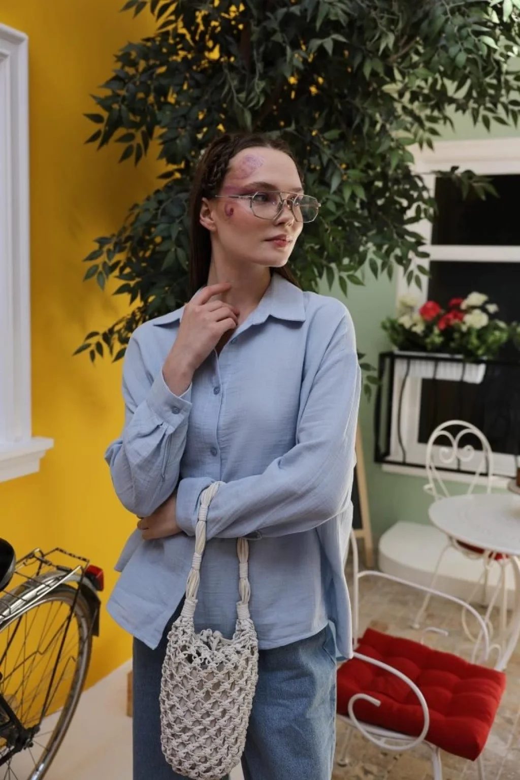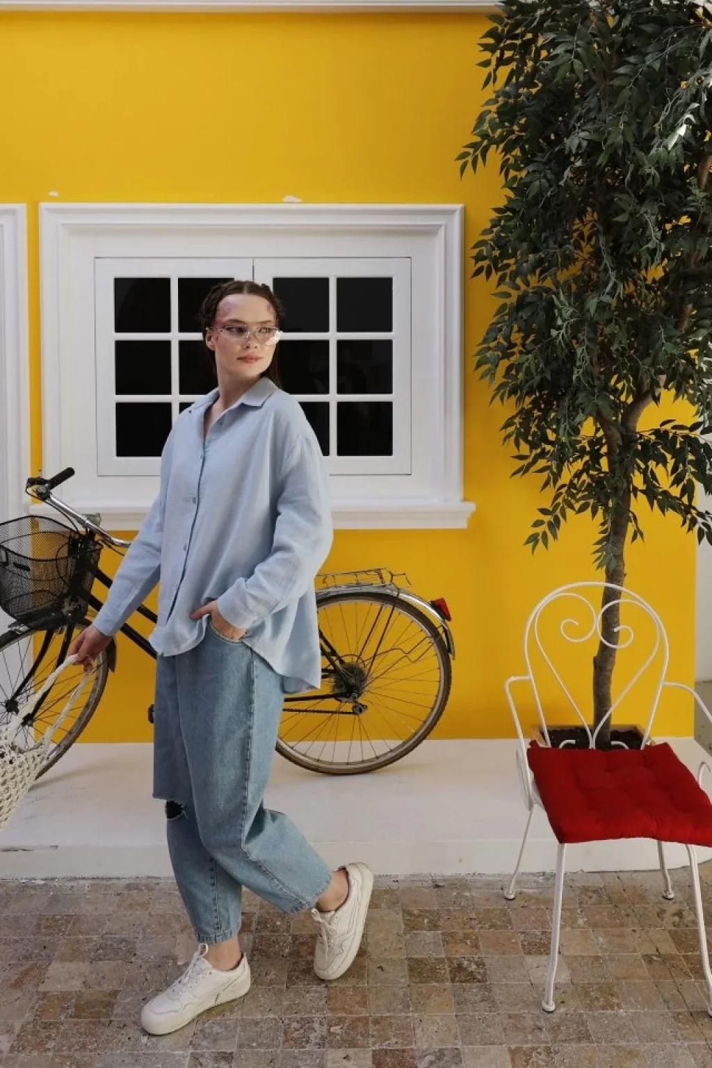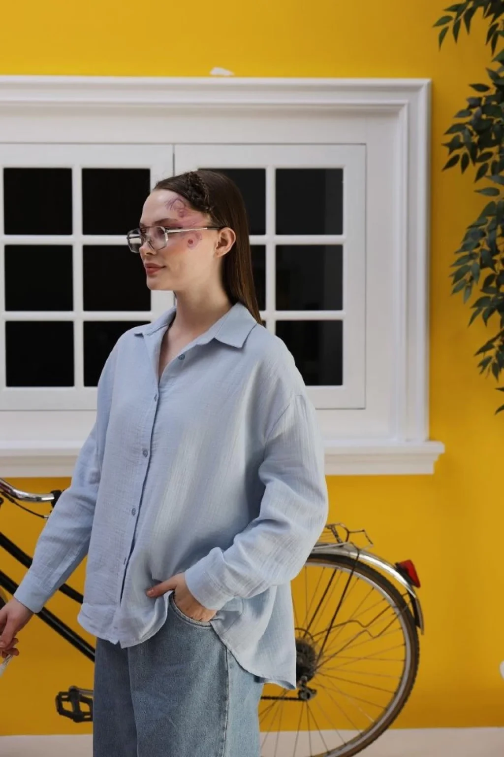 Müslin Uzun Kol Gömlek - Bebe Mavisi