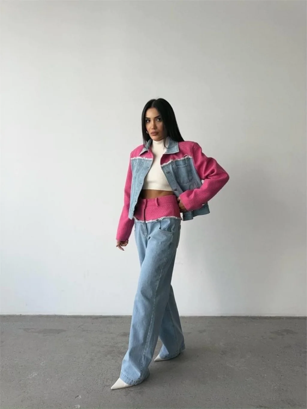 PARÇALI KOT CEKET - PANTOLON TAKIM - Fuşya