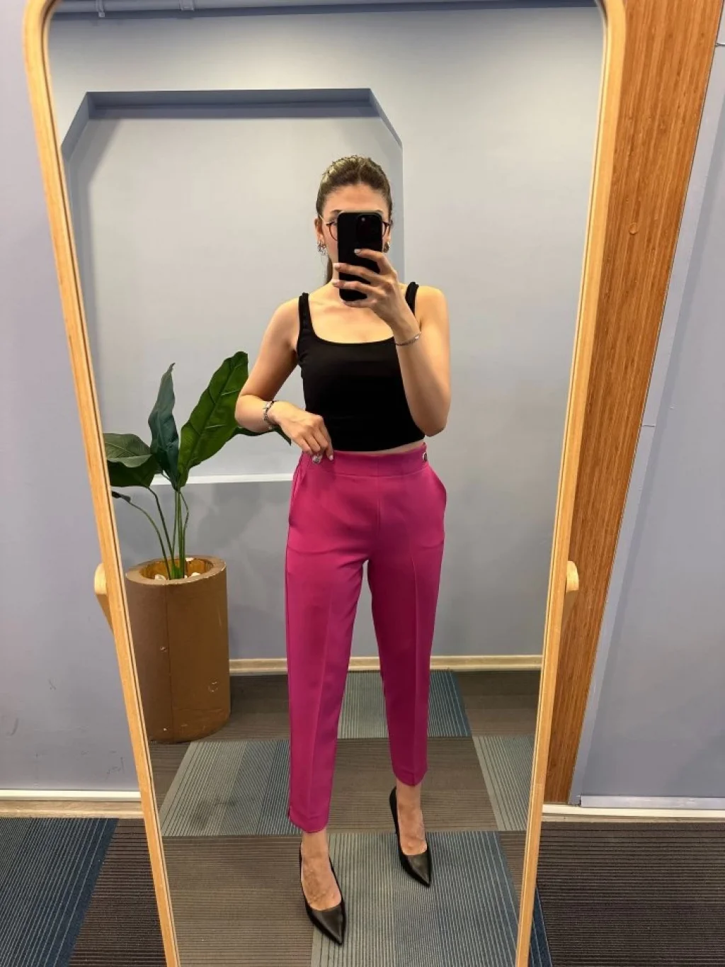 Bel Lasti̇kli̇ Düğmeli̇ Pantolon