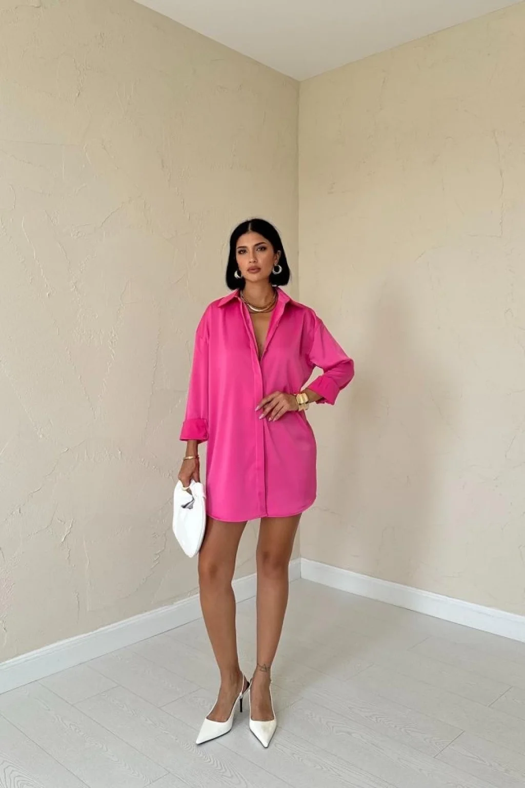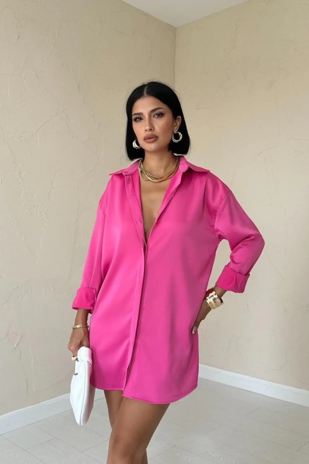 <p>Fuşya Çıtçıtlı Saten Gömlek</p><br> <p>Modelin Ölçüleri: Boy:165, Kg:55, Göğüs:90, Bel:72, Kalça: 100</p><br> <p>Modelin üzerindeki ürün M/38 bedendir</p><br> <ul> </ul>