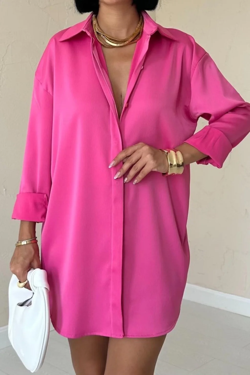 Fuşya Çıtçıtlı Saten Gömlek