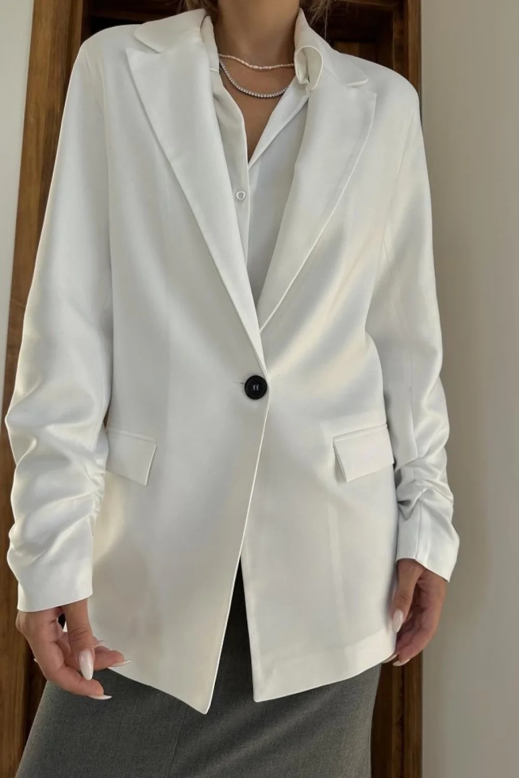 Ekru Kol Ucu Büzgülü Atlas Ceket
