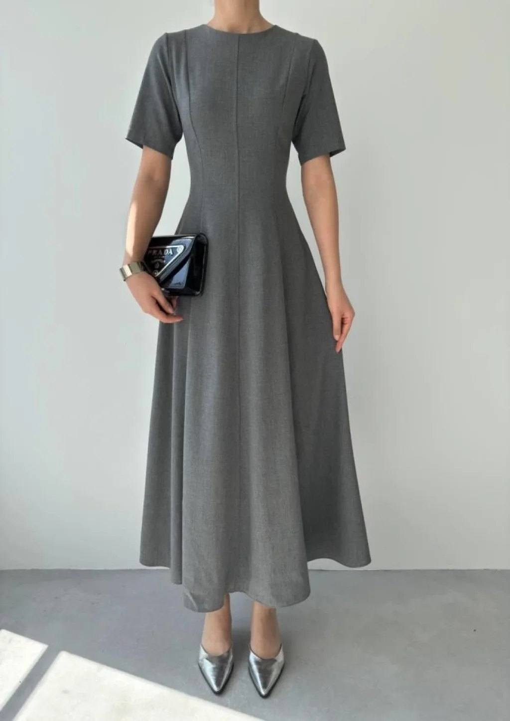 Kadın Uzun Kollu Geometrik Yaka Midi Ithal Krep Elbise