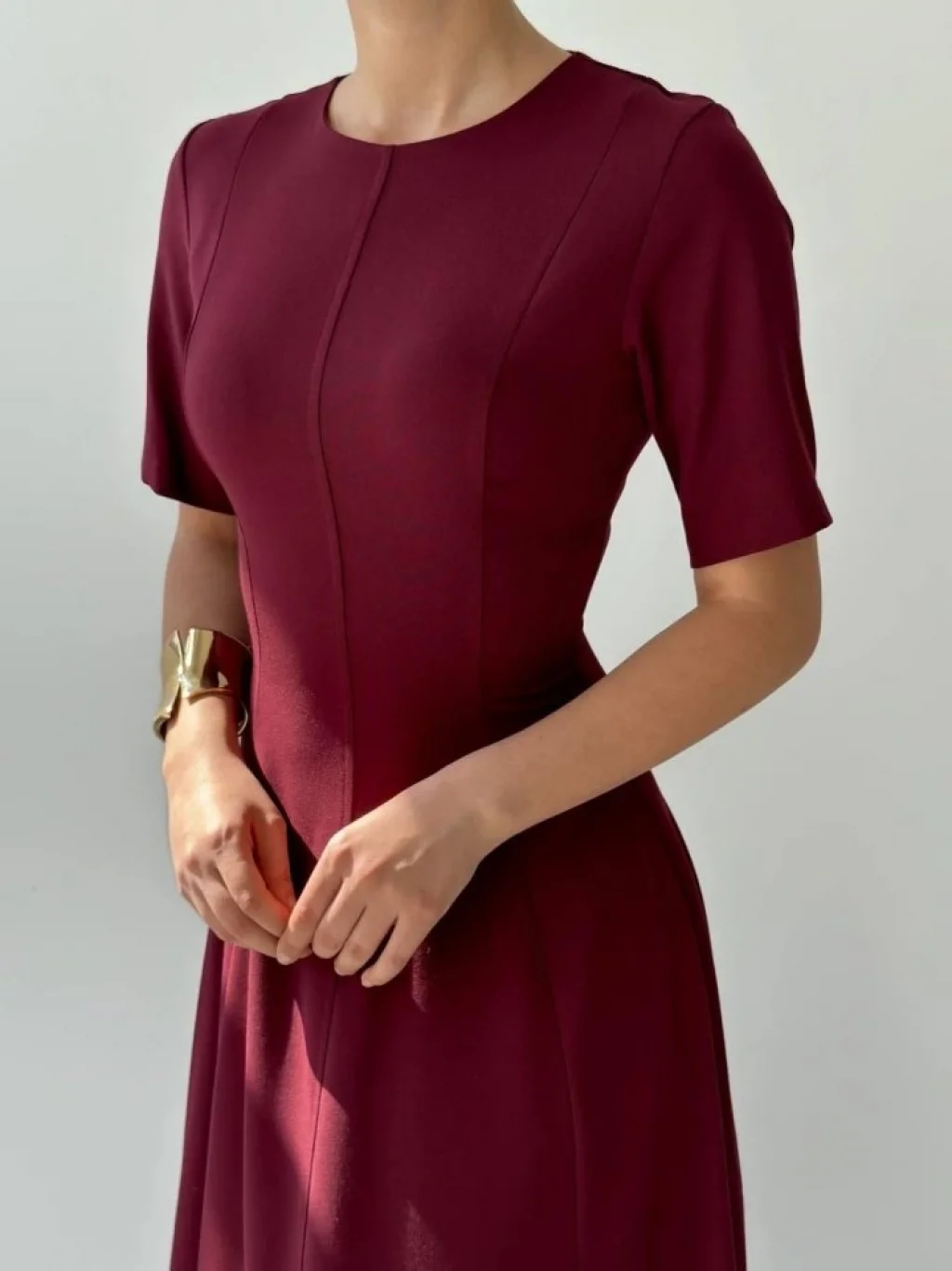 Kadın Uzun Kollu Geometrik Yaka Midi Ithal Krep Elbise