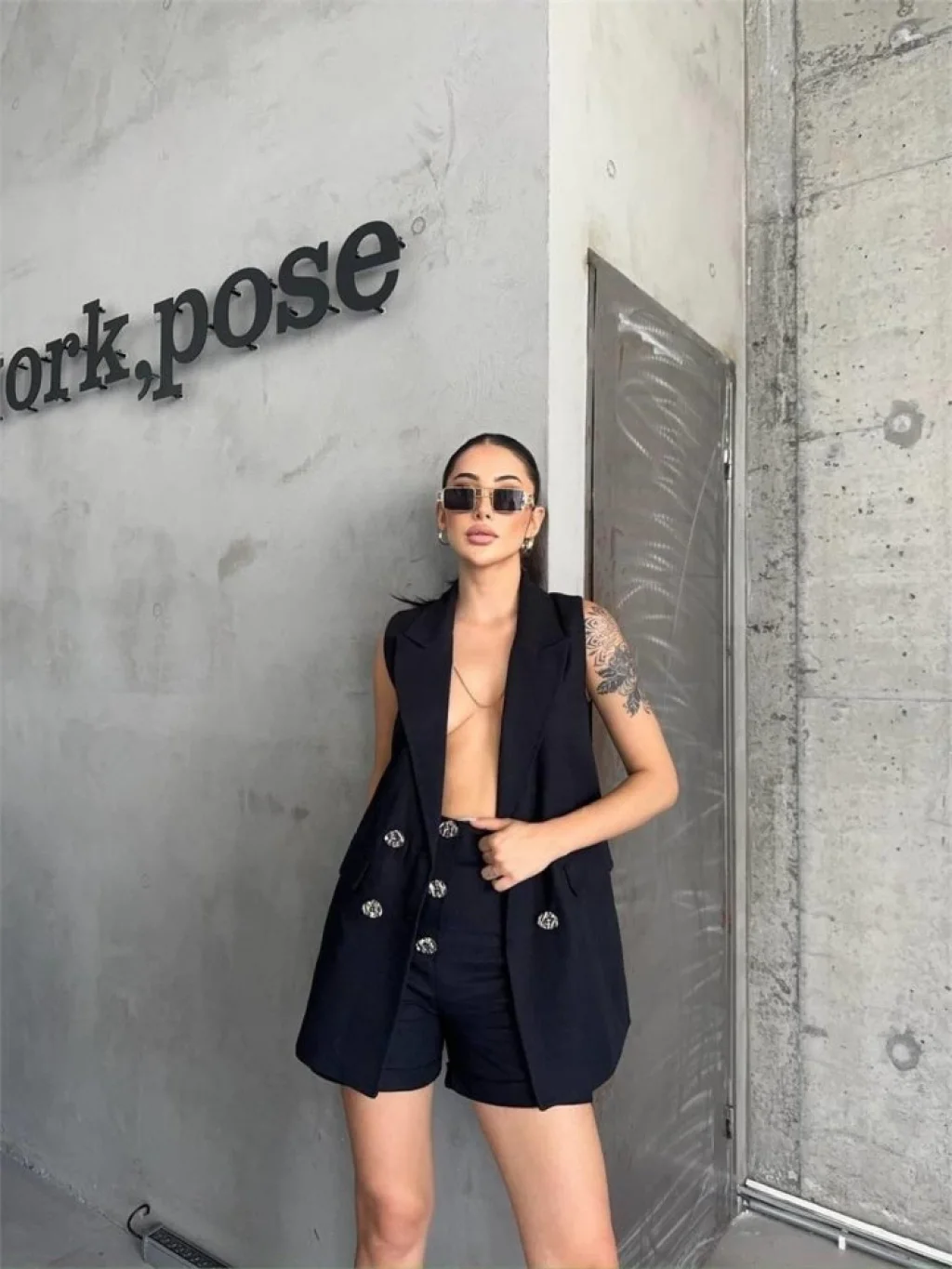 <p>KETEN YELEK - ŞORT TAKIM - Siyah</p><br> <p>Modelin Ölçüleri: Boy:165, Kg:55, Göğüs:90, Bel:72, Kalça: 100</p><br> <p>Modelin üzerindeki ürün M/38 bedendir</p><br> <ul> </ul>