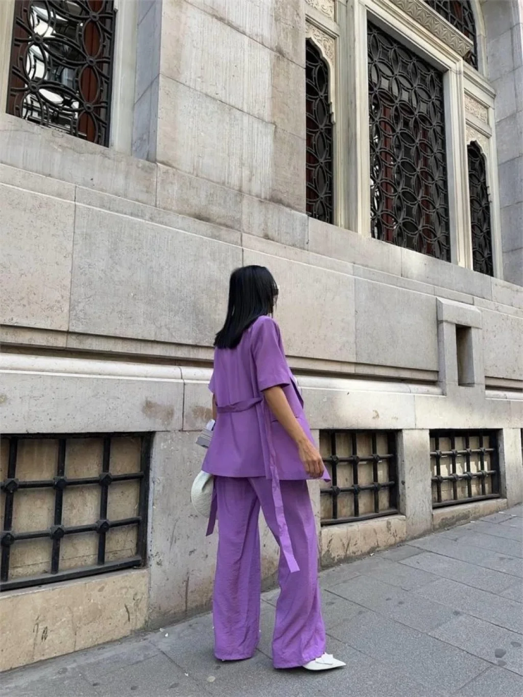 KISA KOL BAĞLAMA DETAYLI CEKET-PANTOLON TAKIM - Mor