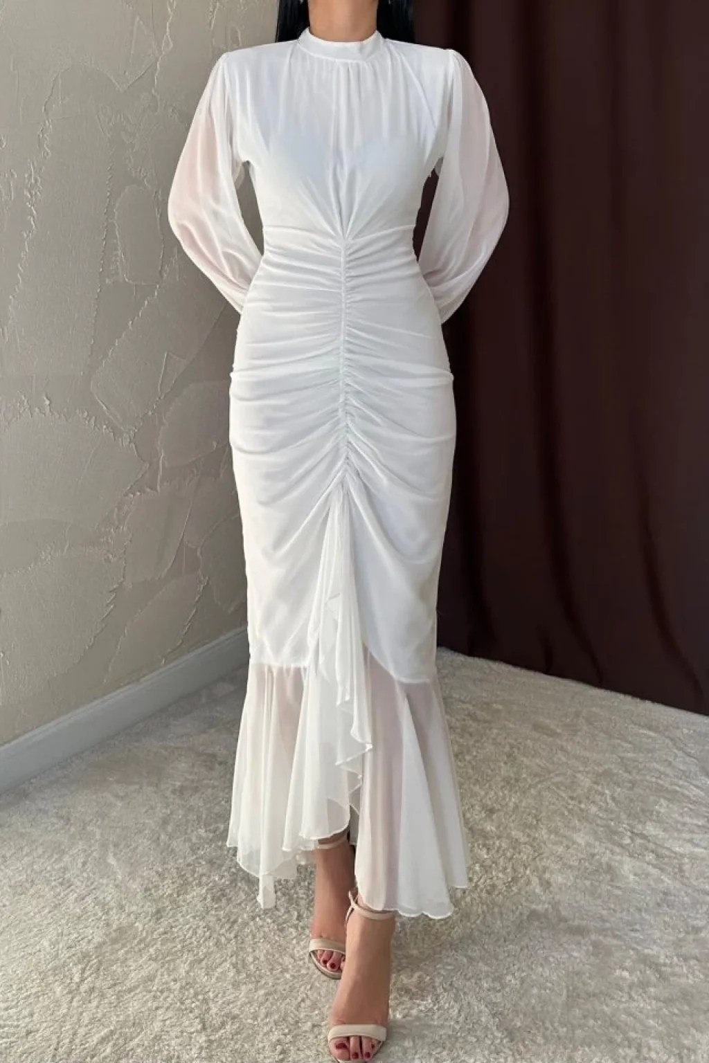 <p>Beyaz Önü Büzgülü Şifon Elbise</p><br> <p>Modelin Ölçüleri: Boy:165, Kg:55, Göğüs:90, Bel:72, Kalça: 100</p><br> <p>Modelin üzerindeki ürün M/38 bedendir</p><br> <ul> </ul>