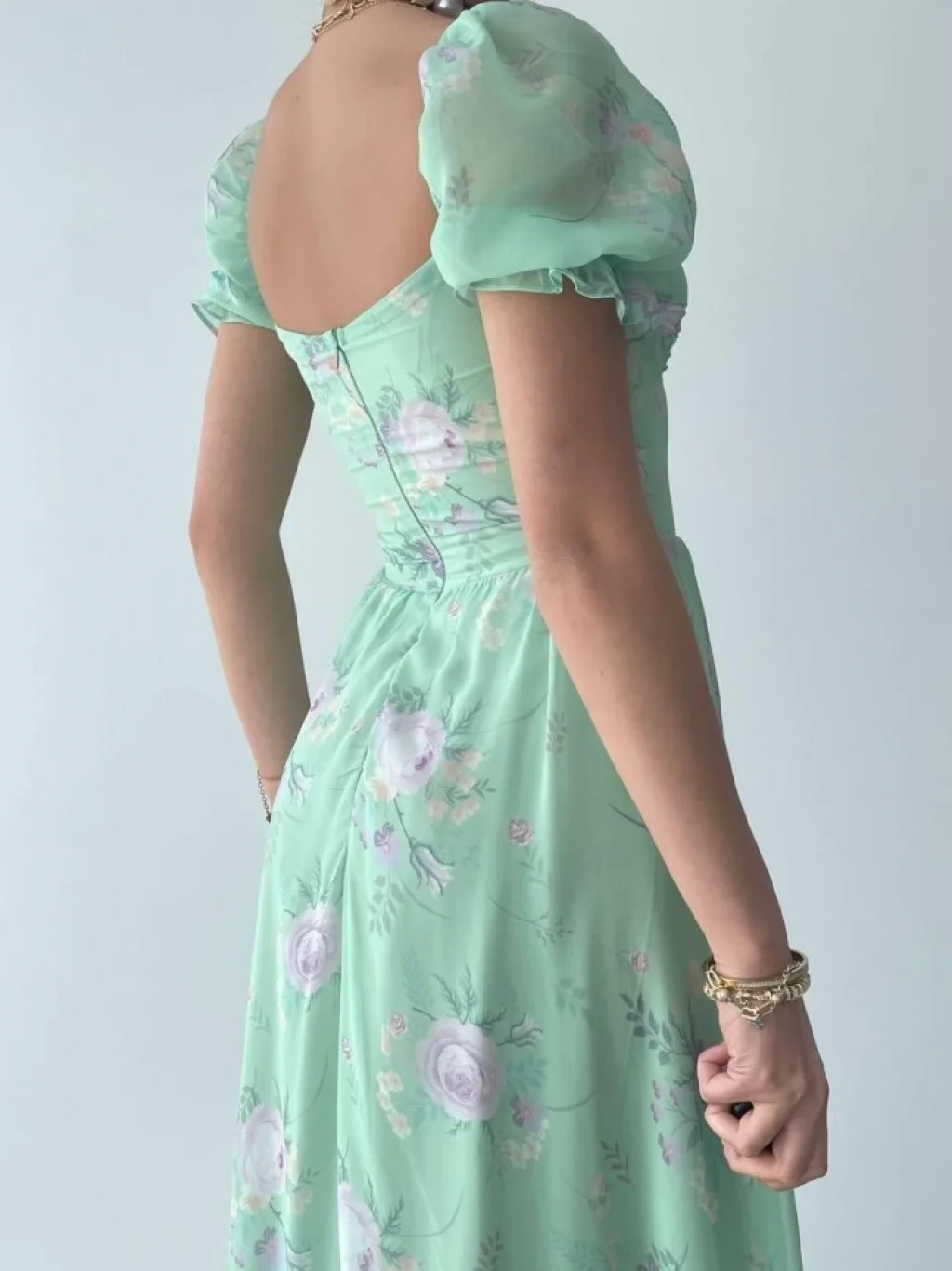 ŞİFON KUMAŞ DİJİTAL DESEN BASKILI ELBİSE