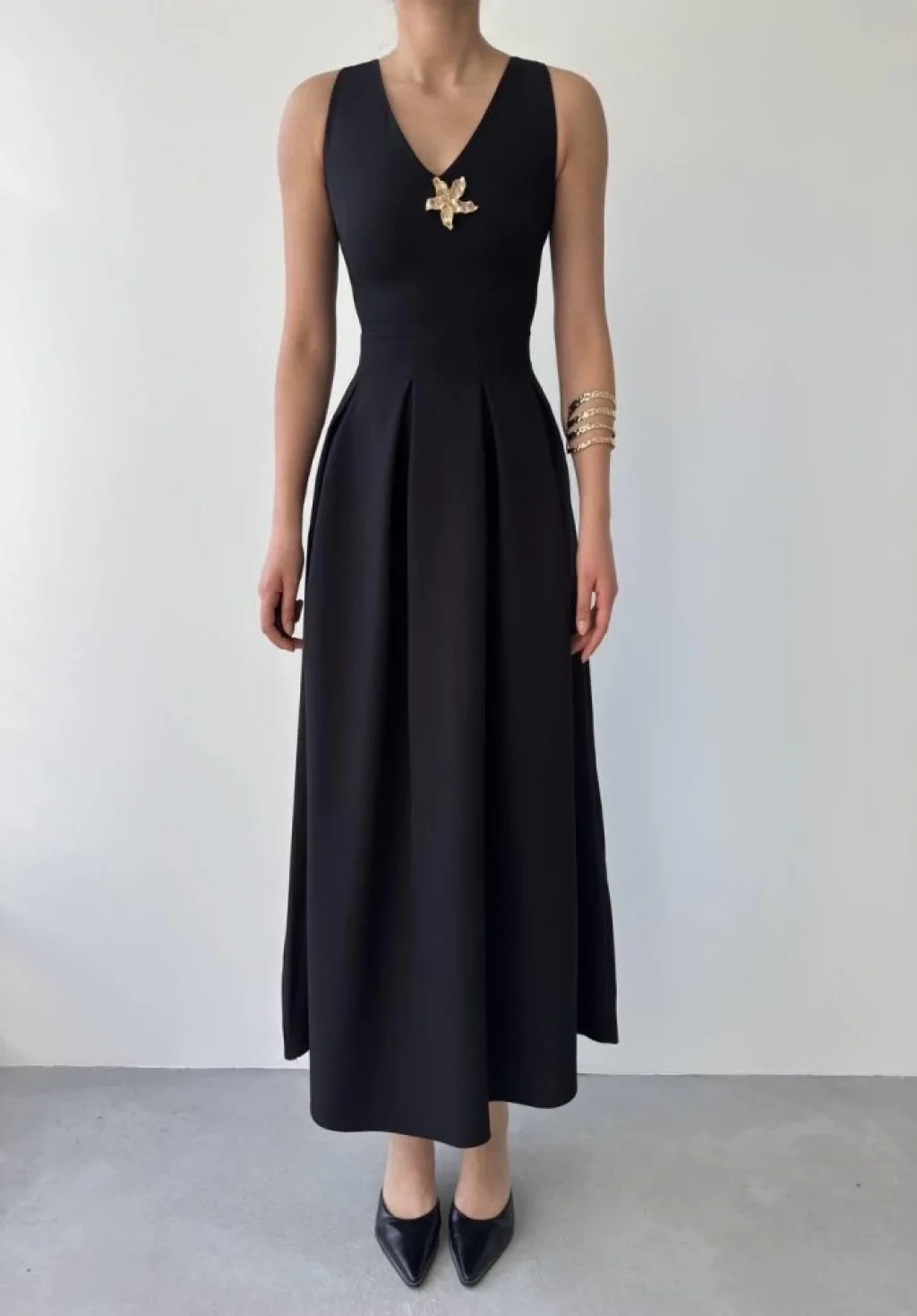 <p>Late Yıldız Detaylı Elbise</p><br> <p>Modelin Ölçüleri: Boy:165, Kg:55, Göğüs:90, Bel:72, Kalça: 100</p><br> <p>Modelin üzerindeki ürün M/38 bedendir</p><br> <ul> </ul>