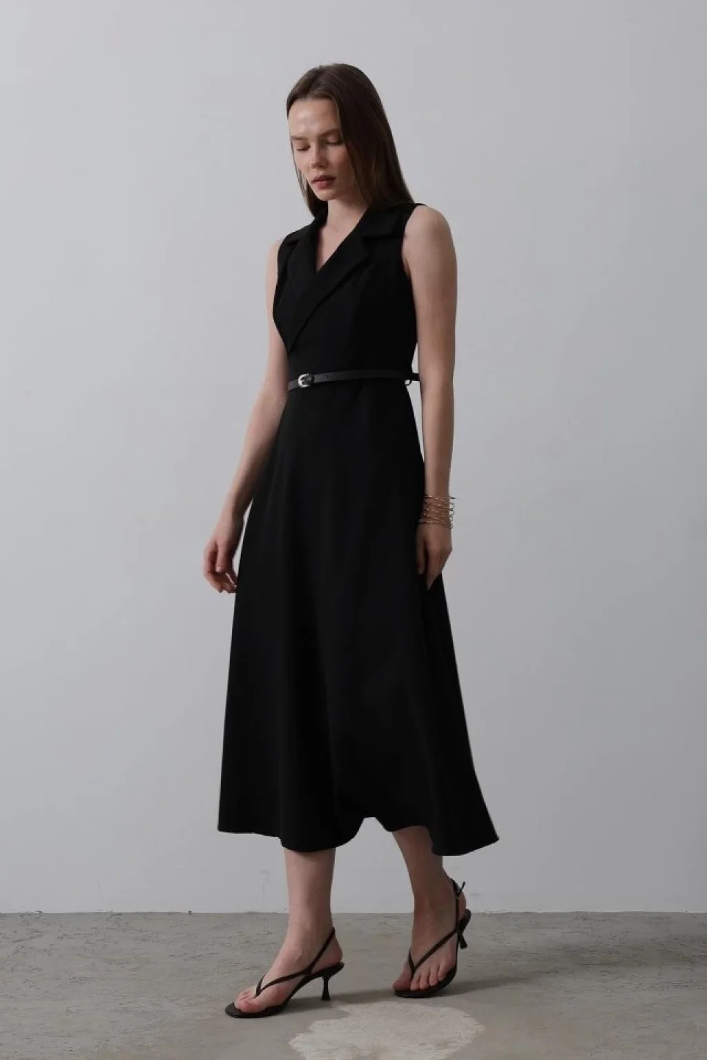 Sıfır Kollu Kemer Detaylı Elbise - Siyah