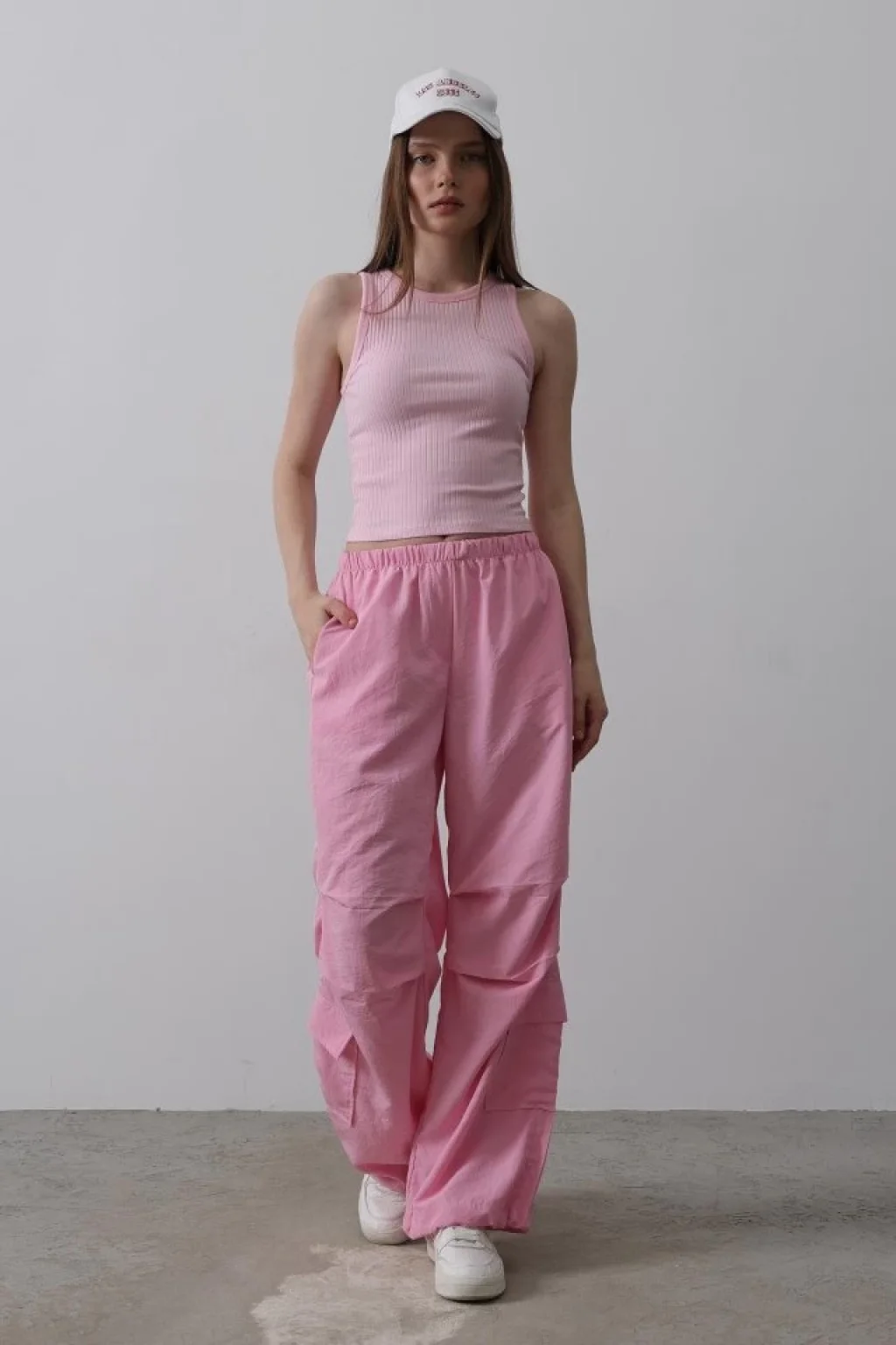<p>Paraşüt Cargo Pantolon - Pembe</p><br> <p>Modelin Ölçüleri: Boy:165, Kg:55, Göğüs:90, Bel:72, Kalça: 100</p><br> <p>Modelin üzerindeki ürün M/38 bedendir</p><br> <ul> </ul>