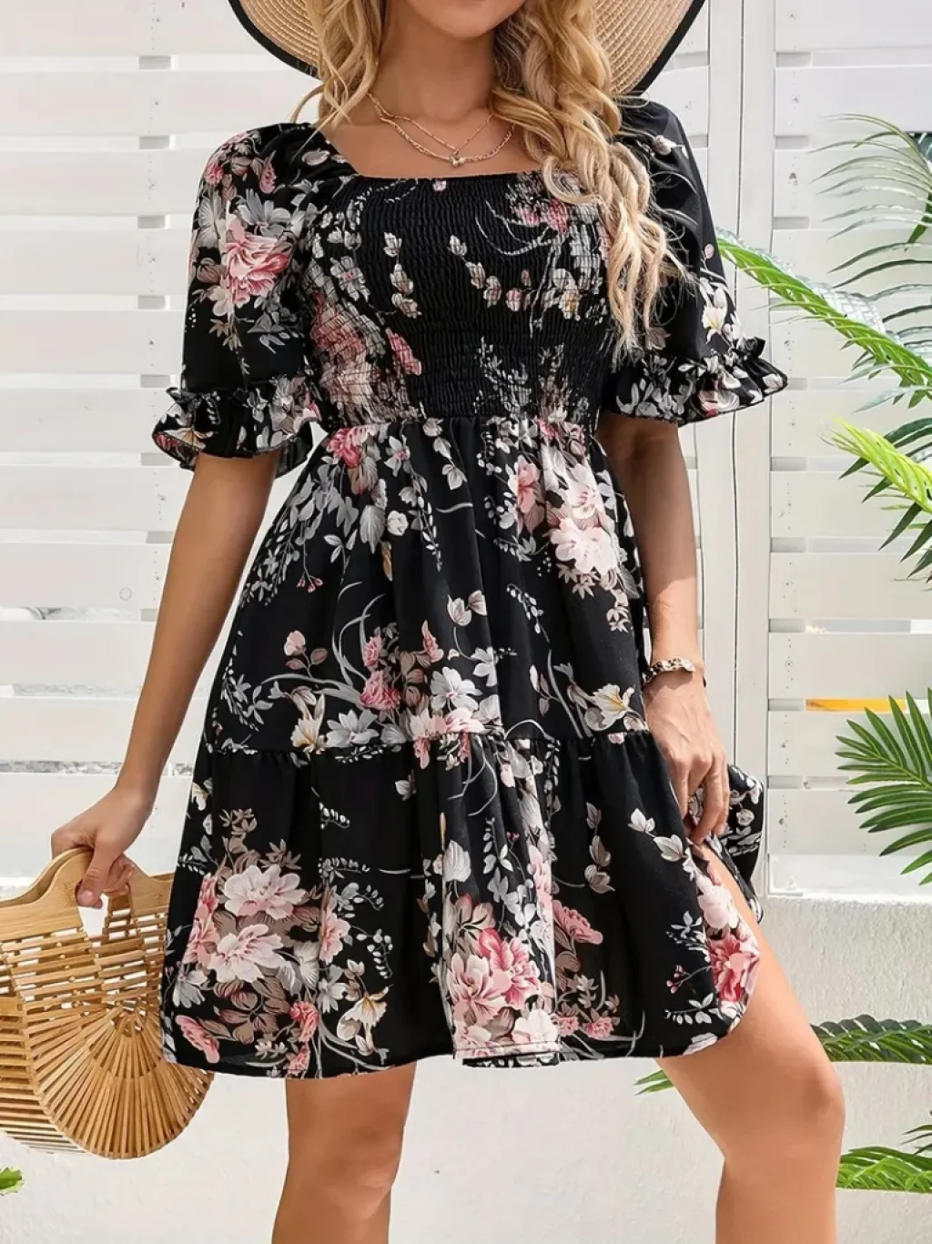 <p>Kadın Kısa Kollu Kare Yakalı Beli Lastikli Kısa Süprem Elbise</p><br> <p>Modelin Ölçüleri: Boy:165, Kg:55, Göğüs:90, Bel:72, Kalça: 100</p><br> <p>Modelin üzerindeki ürün M/38 bedendir</p><br> <ul> <li>TARZ-Diğerleri</li><li>YAKA-Kare Yaka</li><li>DESEN-Çiçek Desen</li><li>KOL UZUNLUK-Kısa Kol</li><li>UZUNLUK-Diğerleri</li><li>EK OZELLIKLER-Boş/Ek özellik Yok</li><li>KALIP-Diger</li><li>TARZ-Diger</li><li>KAPATMA TURU-Diger</li> </ul>