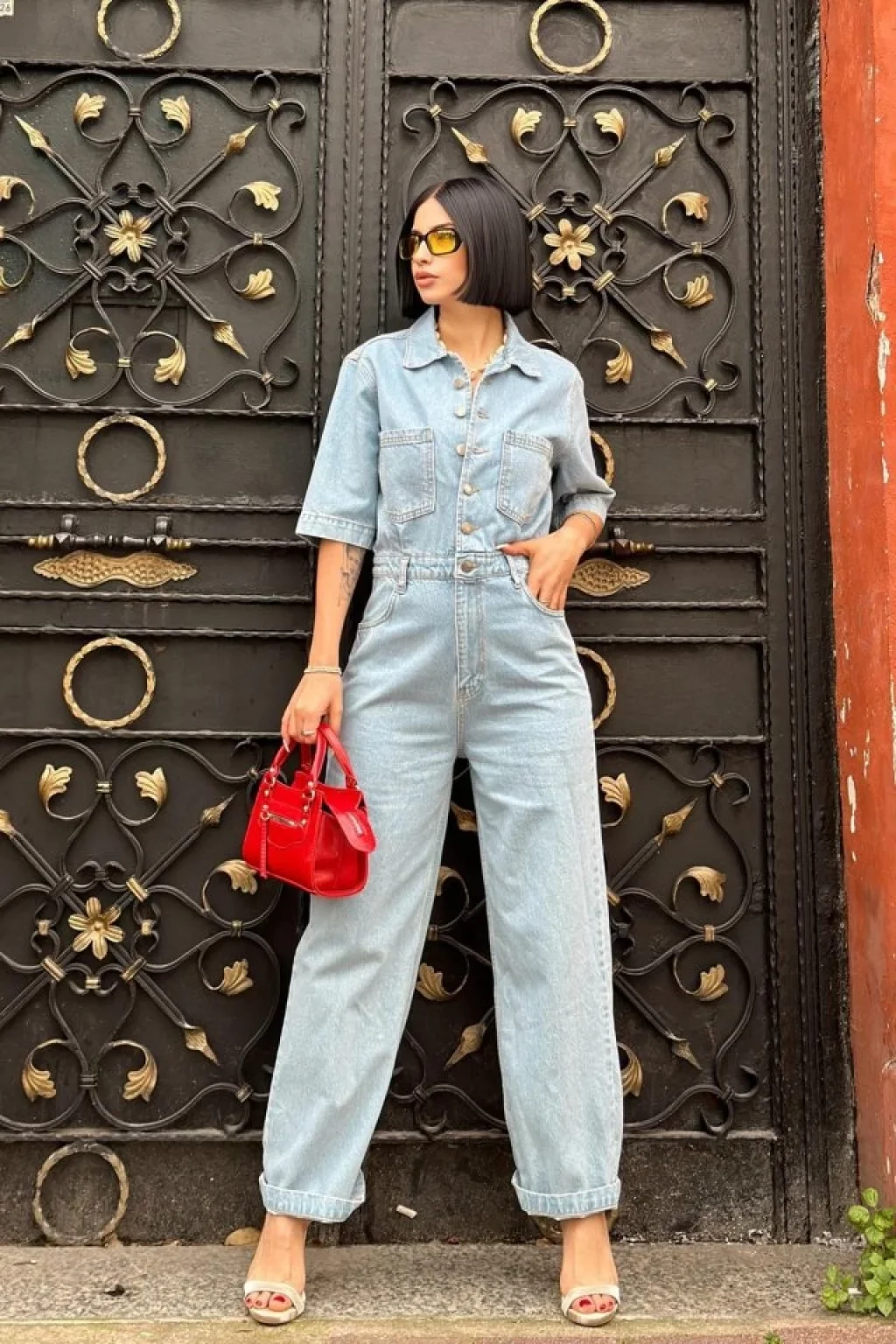 Kadın Askılı Yandan Fermuarlı Geniş Paçalı Valencia Tulum