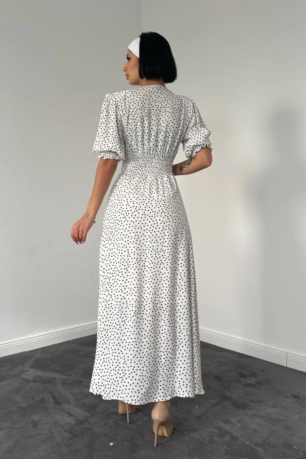 Beyaz Arka Ve Bel Ucu Gipeli Elbise