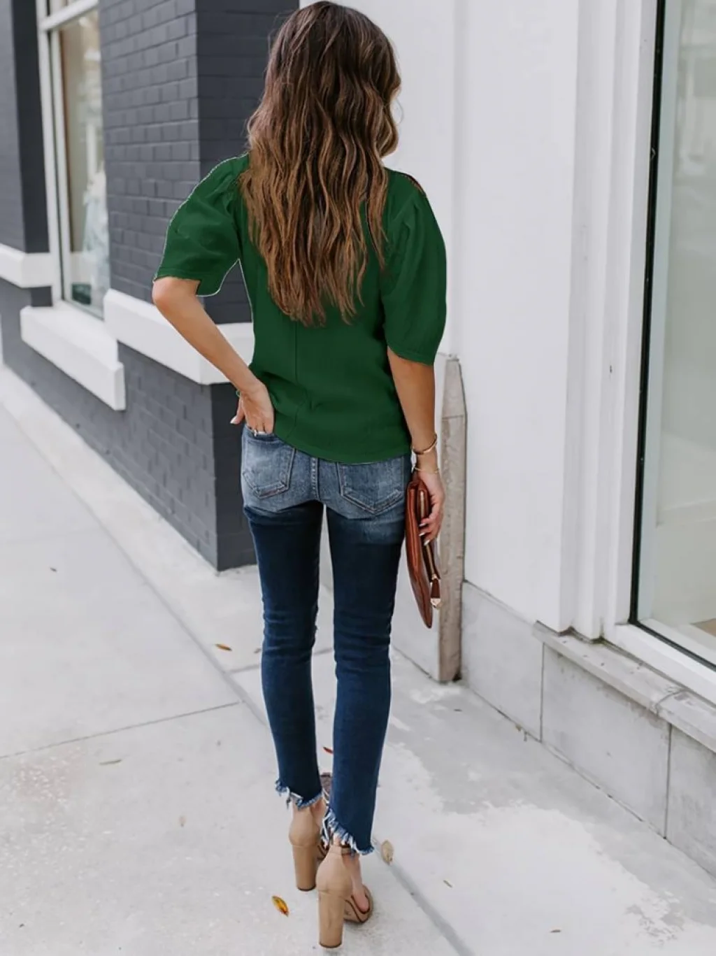 Kadın Kısa Kollu Pileli Balın Kol Bürümcük Bluz