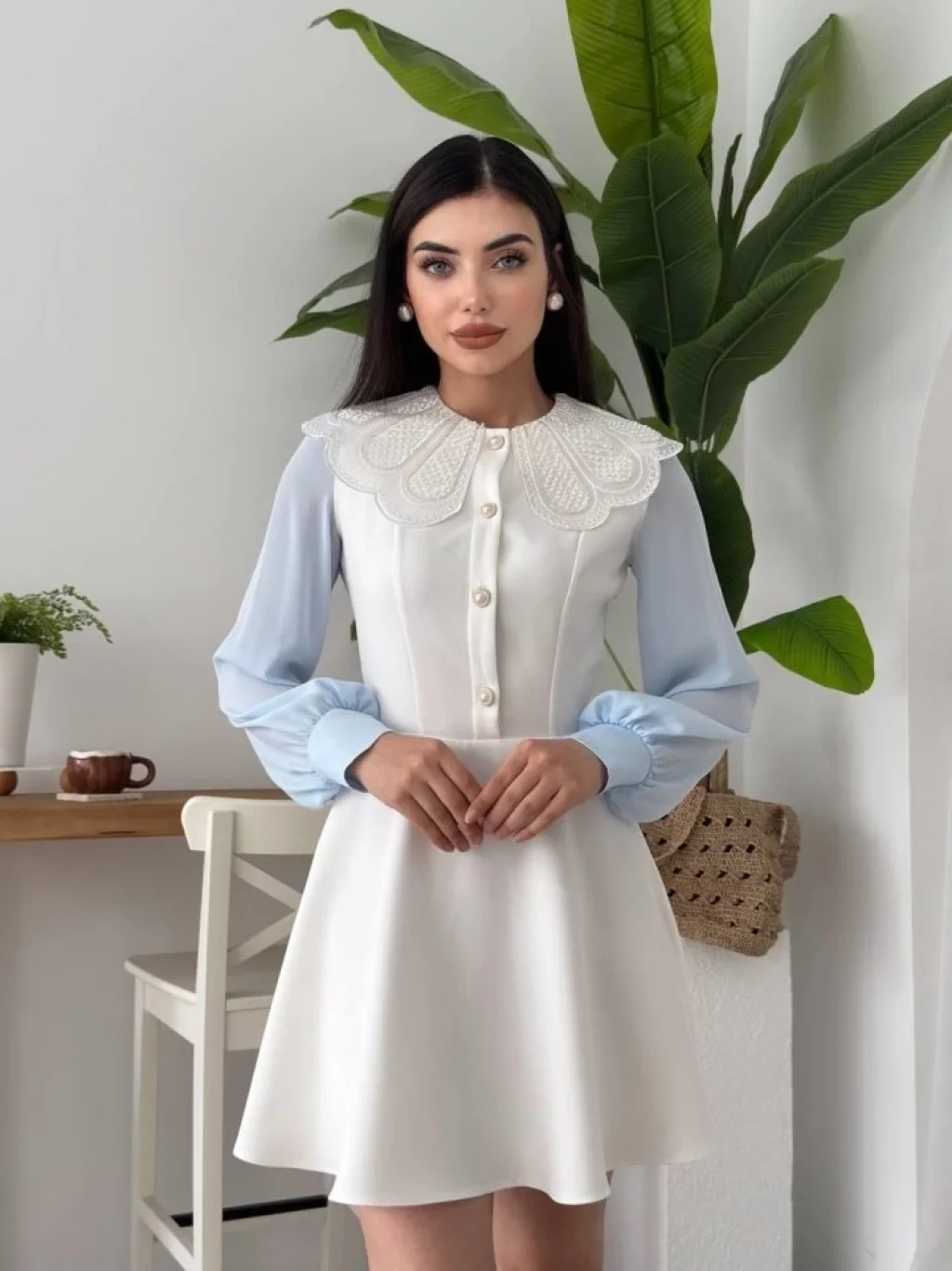 <p>Asıo Bebe Yaka Elbise</p><br> <p>Modelin Ölçüleri: Boy:165, Kg:55, Göğüs:90, Bel:72, Kalça: 100</p><br> <p>Modelin üzerindeki ürün M/38 bedendir</p><br> <ul> </ul>