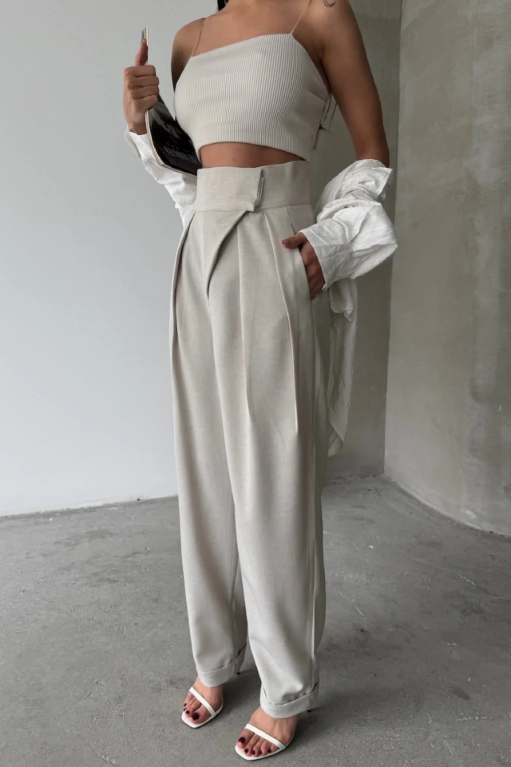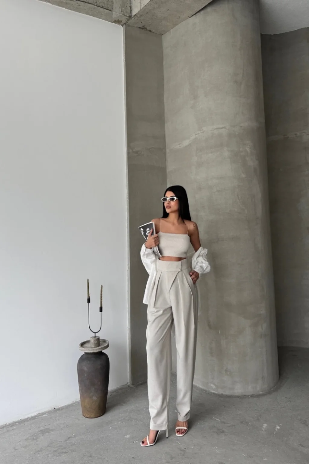 <p>TASARIM PANTOLON - Bej</p><br> <p>Modelin Ölçüleri: Boy:165, Kg:55, Göğüs:90, Bel:72, Kalça: 100</p><br> <p>Modelin üzerindeki ürün M/38 bedendir</p><br> <ul> </ul>